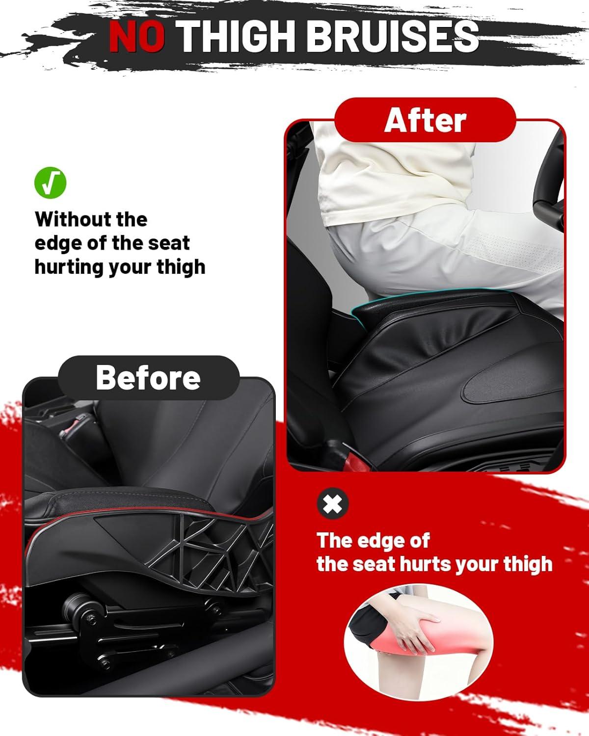 Wider Seat Design: The seat side cushion enhances cornering support, eliminates pressure from the seat edge, and keeps you securely centered for improved control and safety