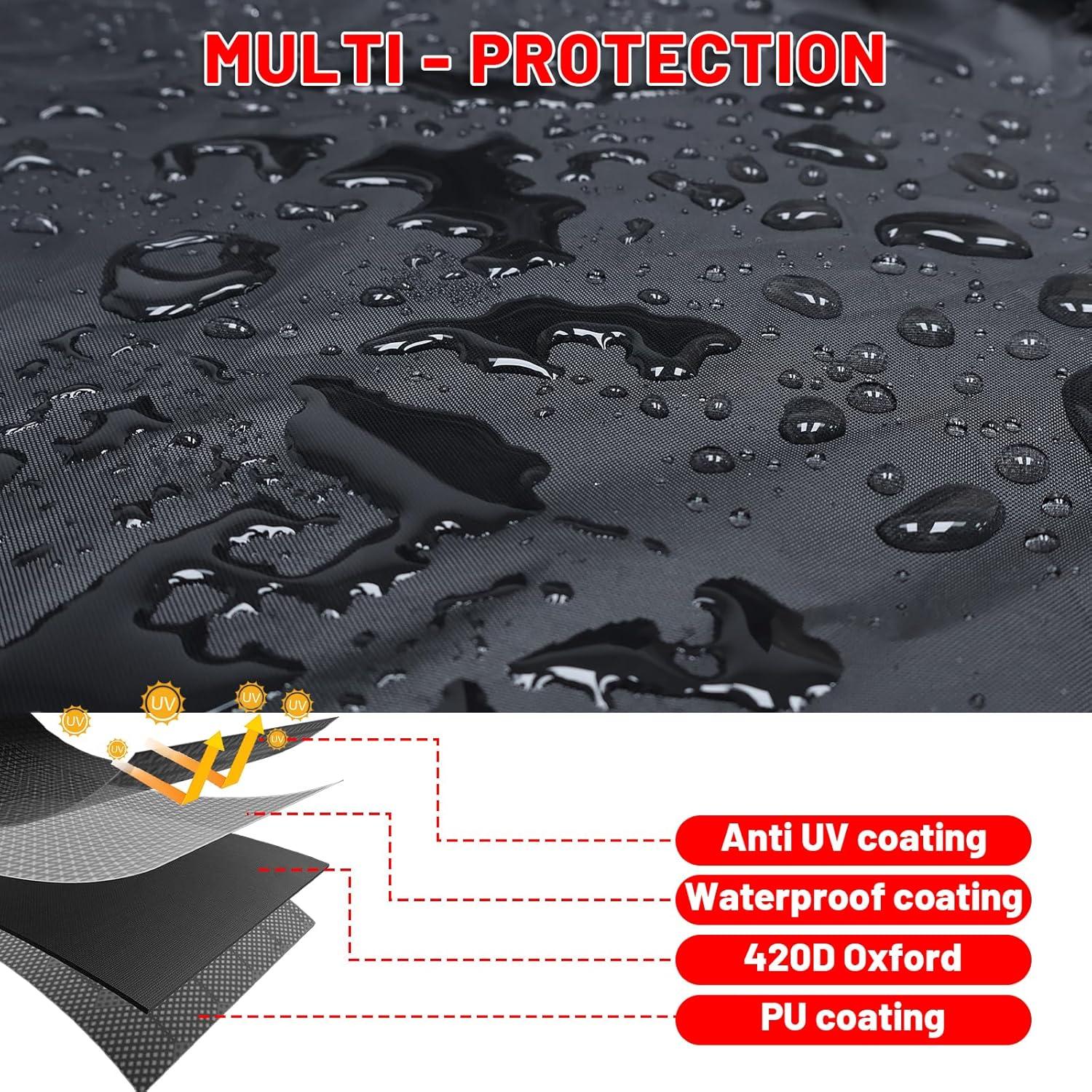 EXCELLENT WINDPROOF AND WATERPROOF: The slingshot cover with top can defend against the high wind because we use thick and strong windproof webbings, adjustable elastic hem for a custom fit, extra 2 buckle straps connecting and 4 ring holes with ropes for connecting. It is wrapped tightly and won't be blown away in the strong wind, rainstorms