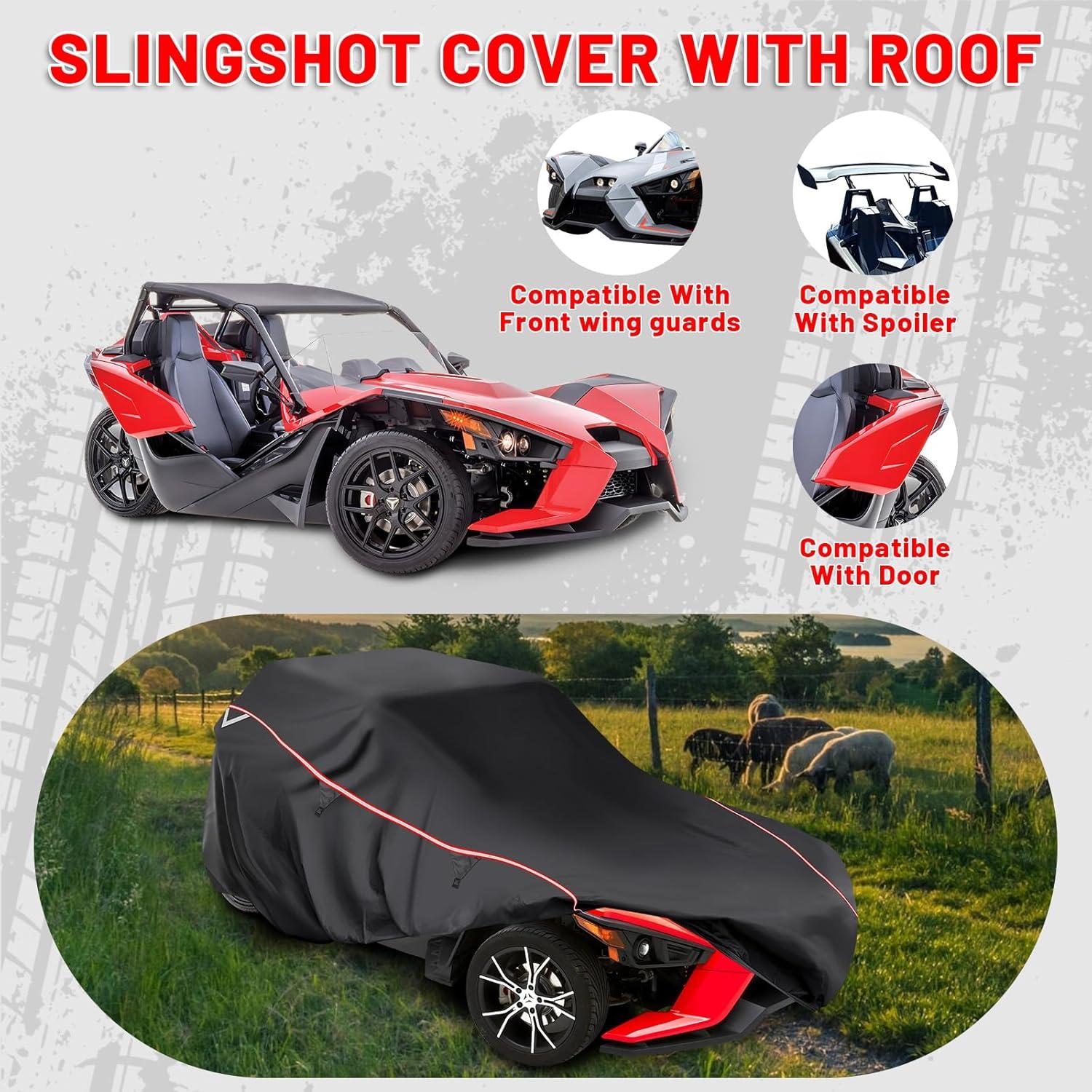 ESPECIALLY FOR SLINGSHOT WITH ROOF: The slingshot cover is compatible with Roofed Slingshots perfectly,or other exterior accessories. Fit for Slingshot 2015-2016, Slingshot Grand Touring 2019-2020, Slingshot R 2020-2024,Slingshot S 2018-2024, Slingshot SL 2015-2023, Slingshot SLR 2017-2024 etc