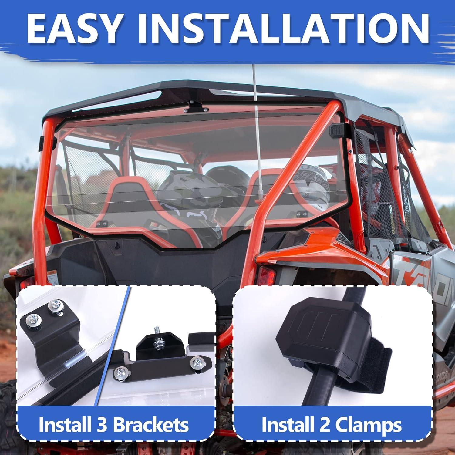 Fitment: The talon 1000r Rear windshield compatible with Talon 1000r 2019+ and Talon 1000x 2019+;It fits soft and hard tops, Protecting your UTV cab from wind, sand, debris, snow, rain and so on. Replacement OEM: 0SB73-HL6-A00
