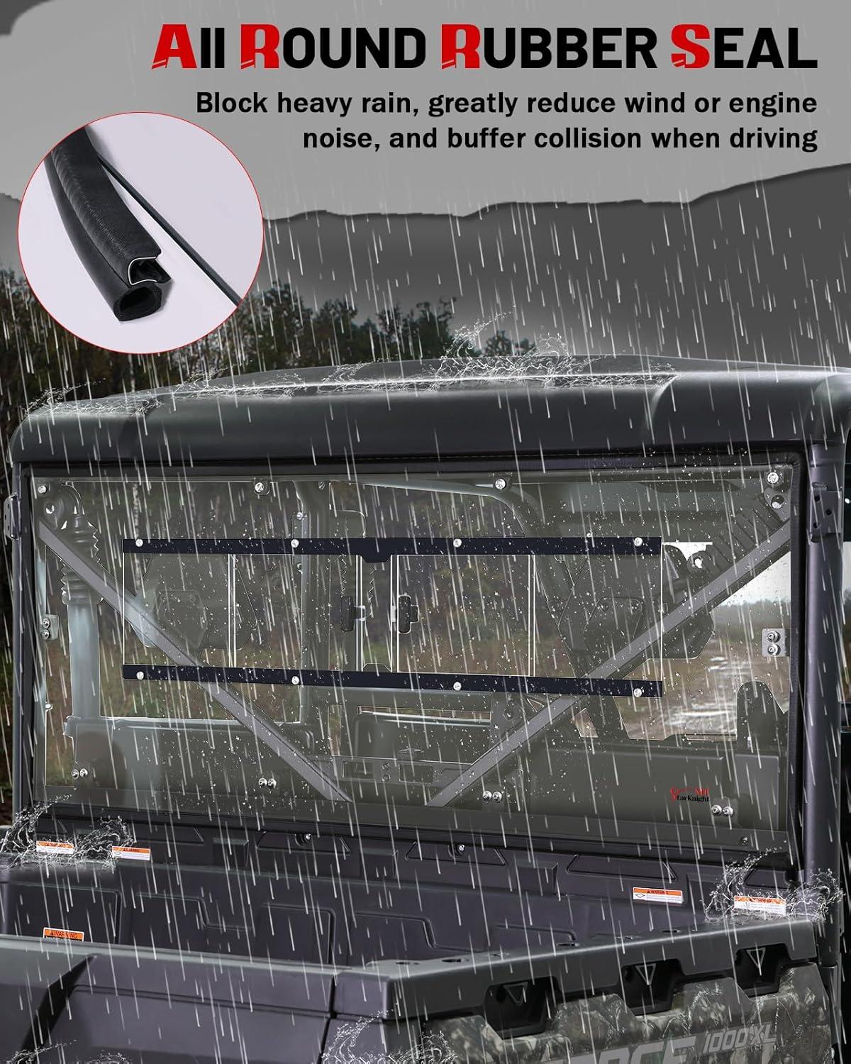 Noise Reduction: The UFORCE 1000 rear windshield features a full-perimeter waterproof rubber seal that effectively reduces wind noise inside your UTV. It also cushions and absorbs shocks for the windshield while enhancing waterproof sealing performance.