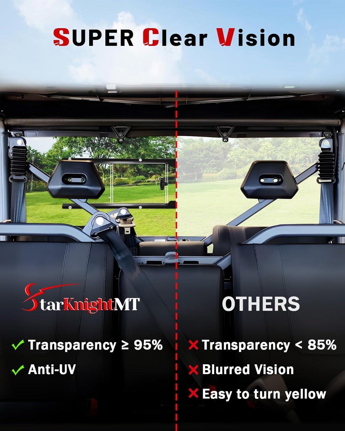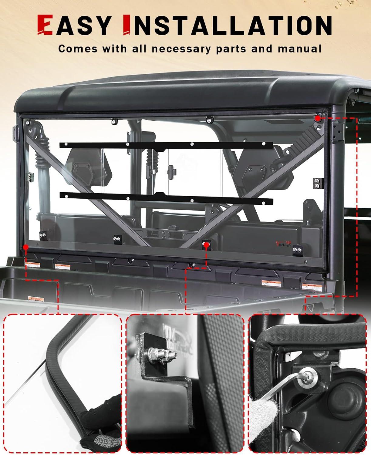 COMPATIBILITY: The StarknightMT UTV rear window is compatible with CFMOTO UForce 1000 2019-2025 and compatible with CFMOTO UForce 1000 XL 2022-2025; It fits MOST soft and hard tops, protecting your UForce interior from wind, dust, debris, snow, rain