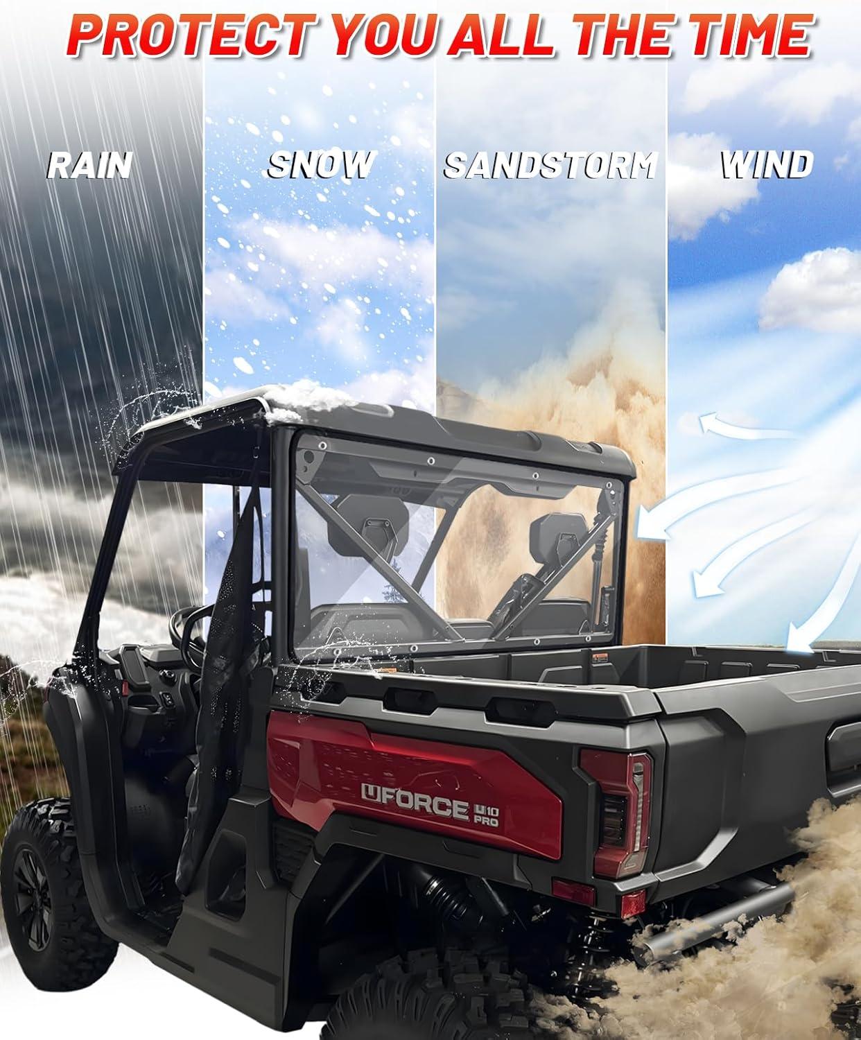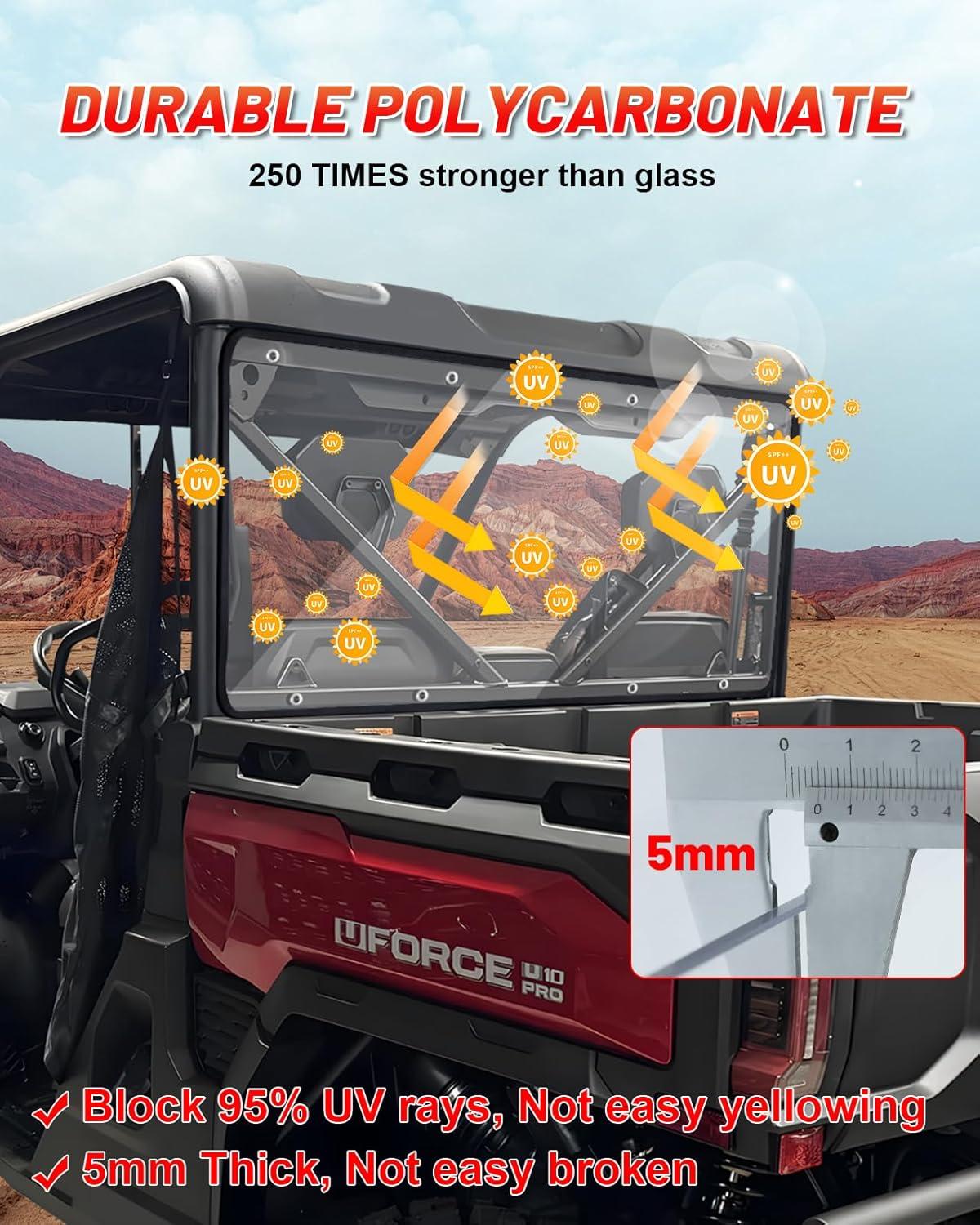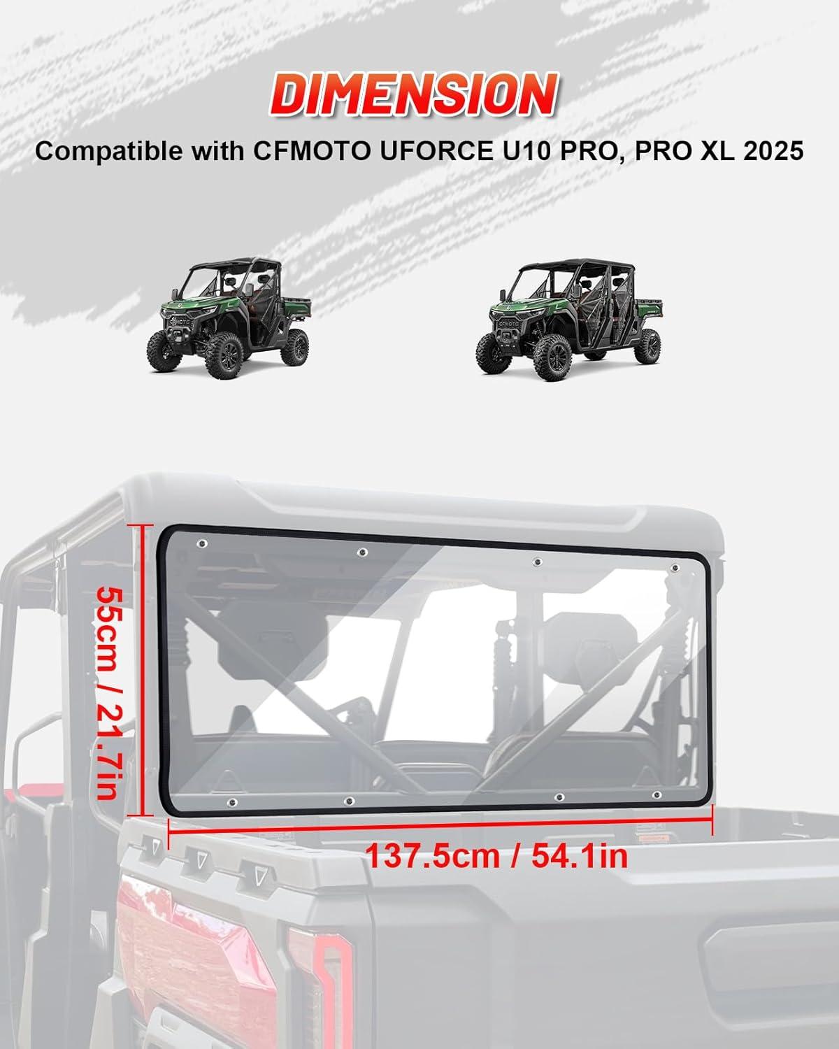 FITMENT: The uforce rear windshield is compatible with CFMOTO UFORCE U10 Pro (Highland) 2025; compatible with CFMOTO UFORCE U10 Pro XL (Highland) 2025