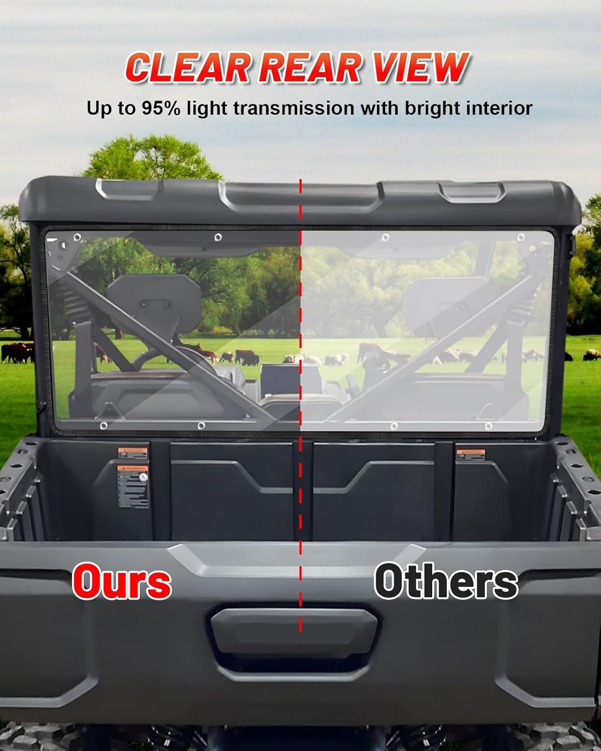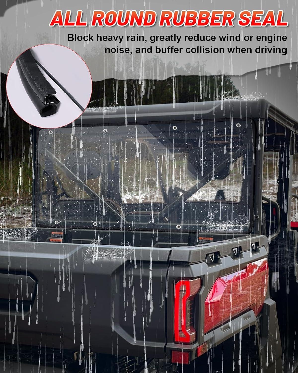 GREAT PROTECTION: The rear windshield's tight rubber seal quiets engine noise and seals out dust during off-road trails. When rain pours or sand kicks up, it locks out mud and water to keep your cab clean. And whether dodging flying rocks or icy gusts, the u10 pro full rear window shields you from debris and cold drafts, so you drive safer and stay cozy, no matter the terrain