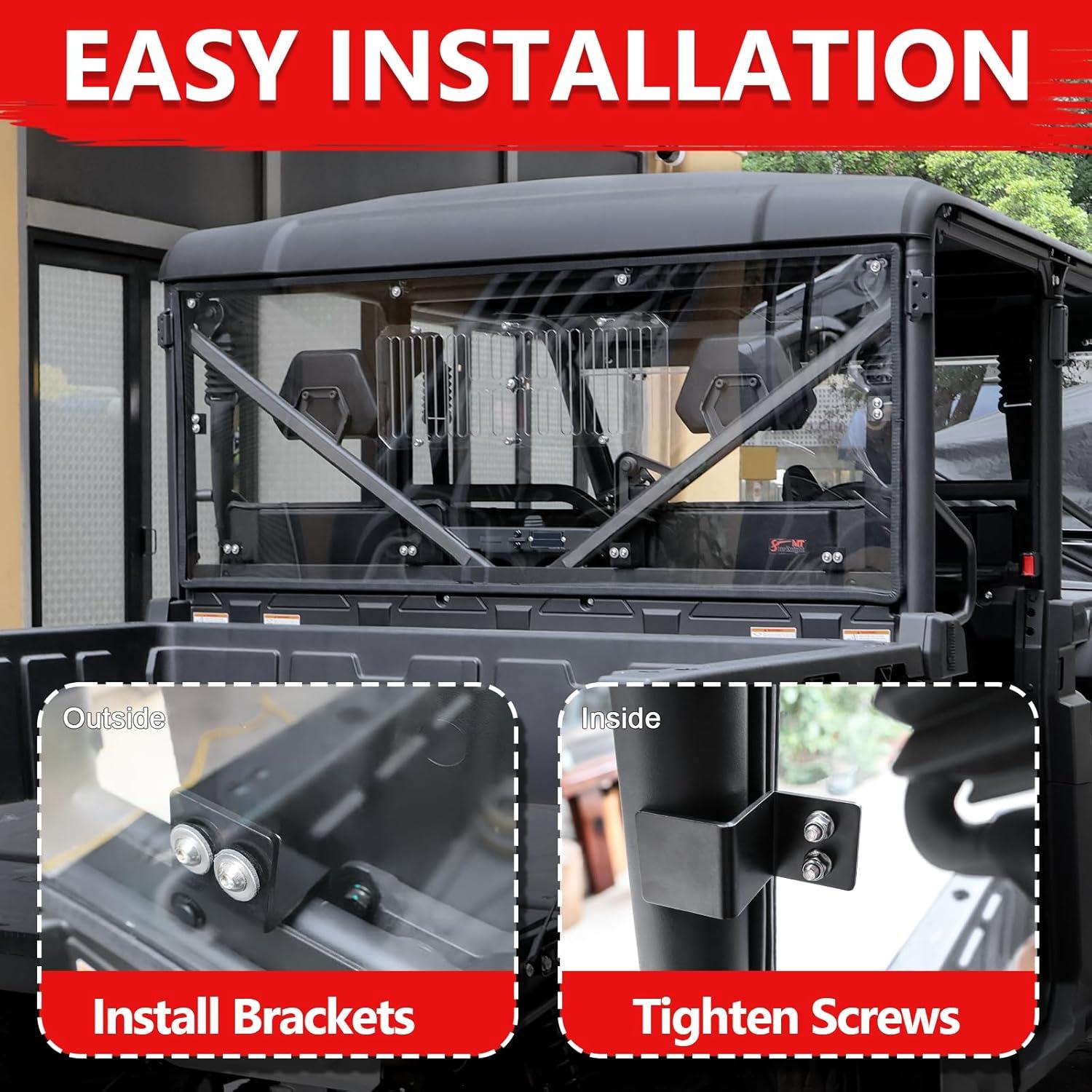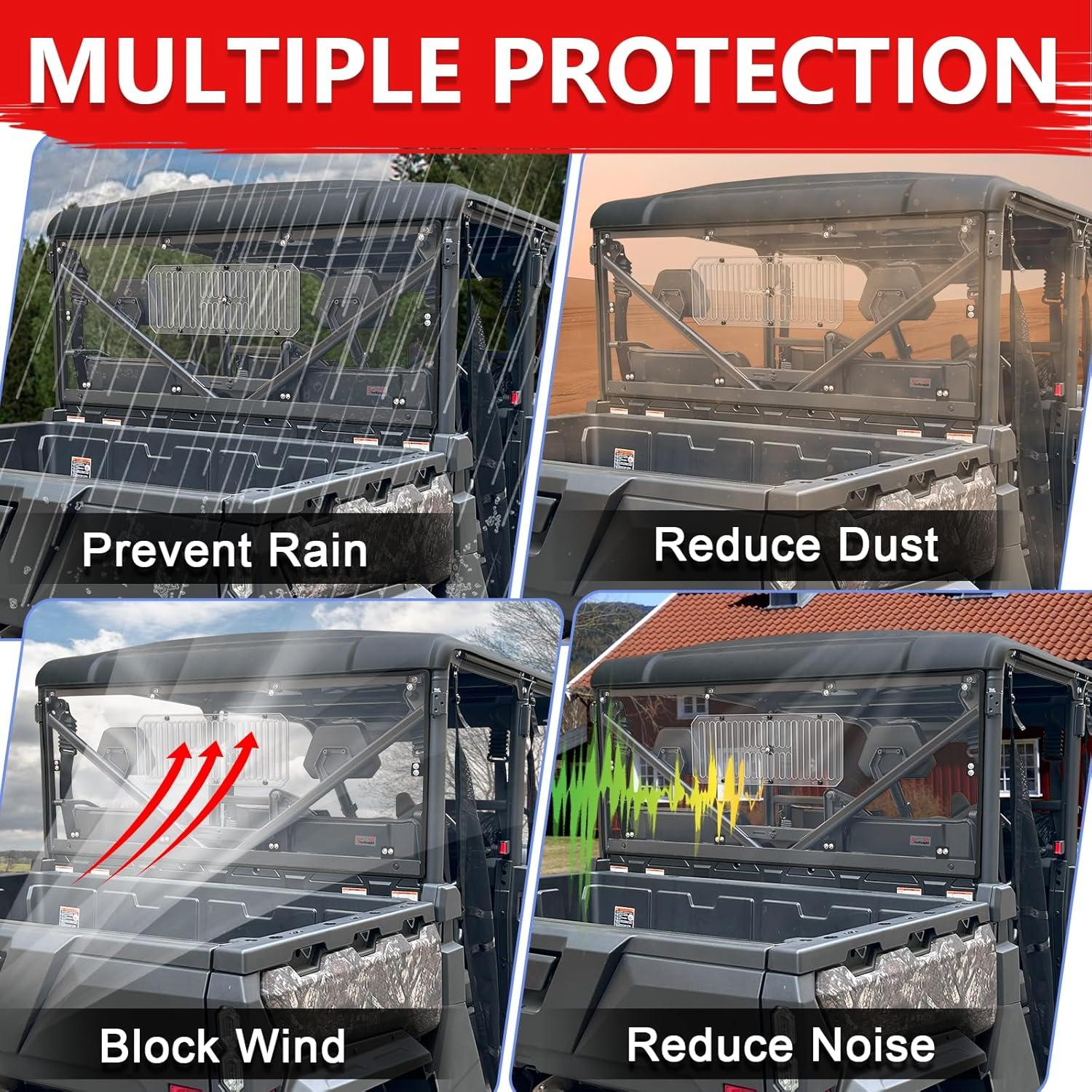 Fitment: The UFORCE 1000 Rear windshield is compatible with CFMOTO UFORCE 1000 2019-2025 and UFORCE 1000 XL 2022-2025; It fits soft and hard tops, protecting your UTV cab from wind, sand, debris, snow, and rain, and so on