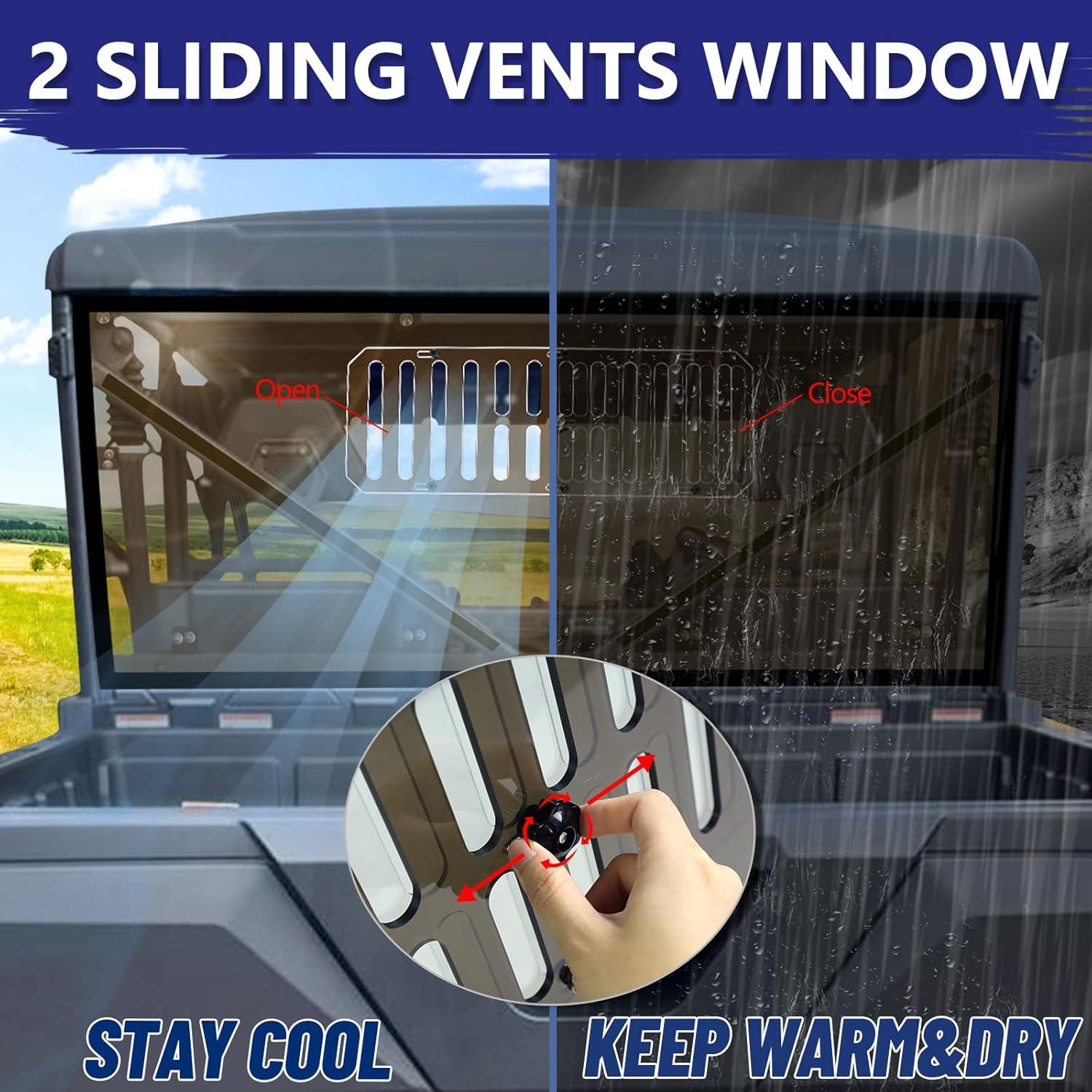 2 in 1 Window: StarknightMT sliding vent windshield allows you to adjust the direction and amount of airflow for maximum comfort, You can both feel the breeze on hot days and get full protection against rain, dust, mud, and tree Branches. Also, air directed to the inside of the window can prevent fogging in chilly winter