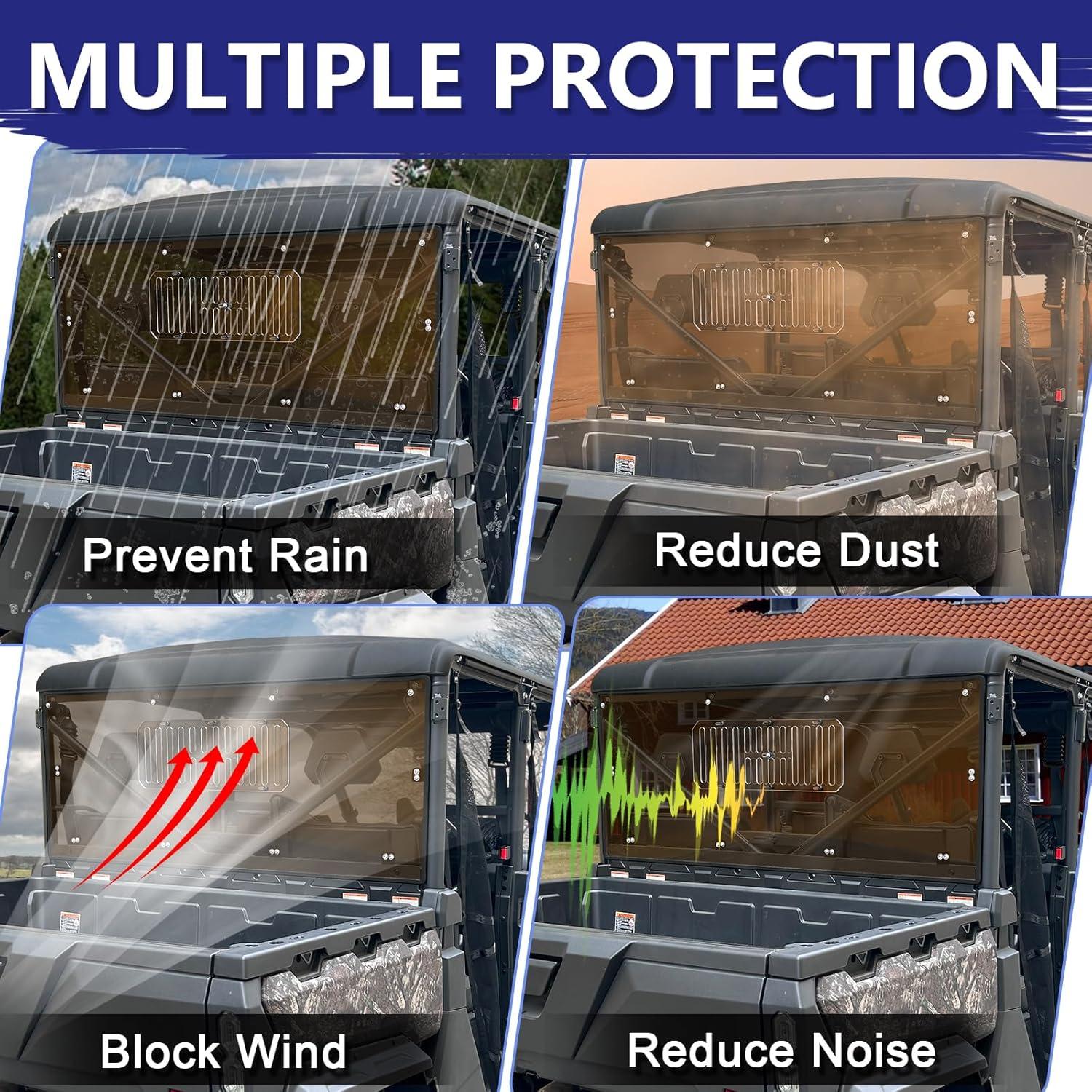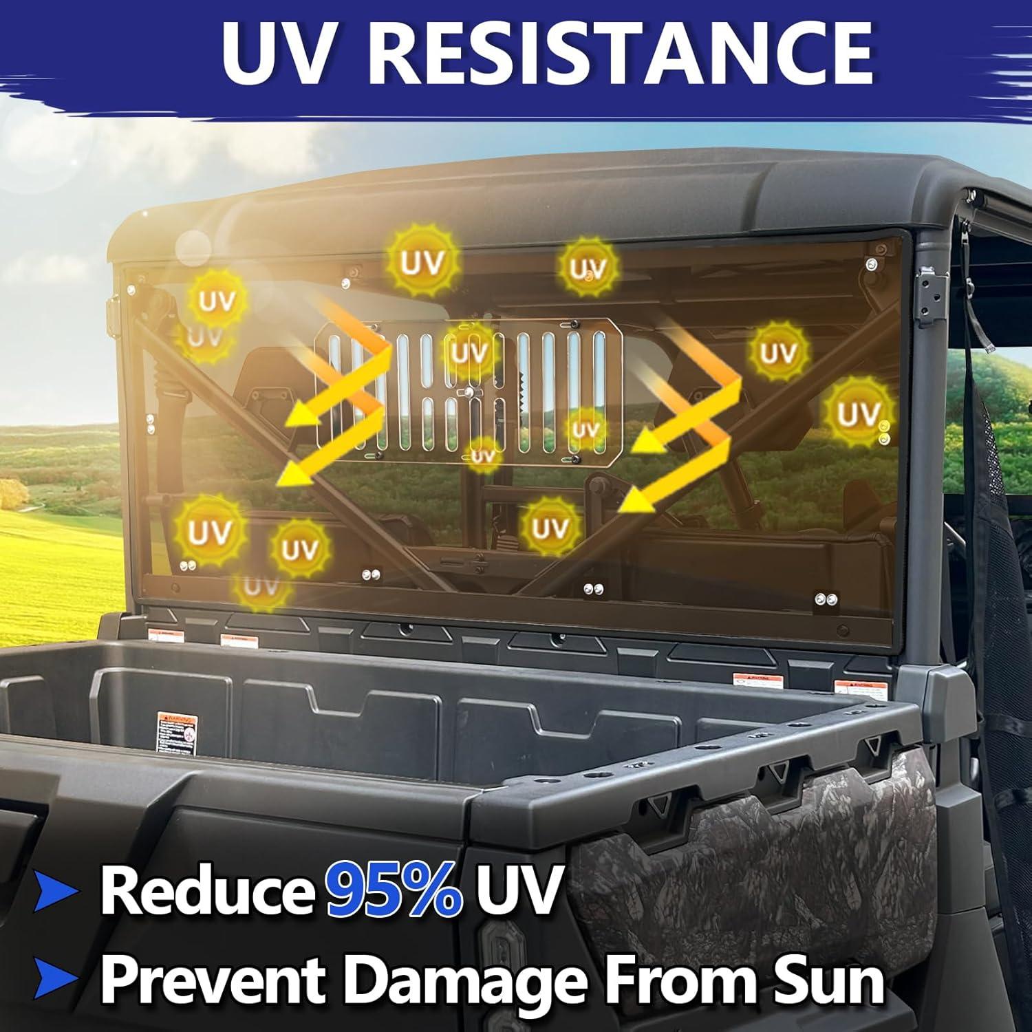 Fitment: The UFORCE 1000 Rear windshield is compatible with CFMOTO UFORCE 1000 2019-2025 and UFORCE 1000 XL 2022-2025; It fits soft and hard tops, protecting your UTV cab from wind, sand, debris, snow, and rain, and so on