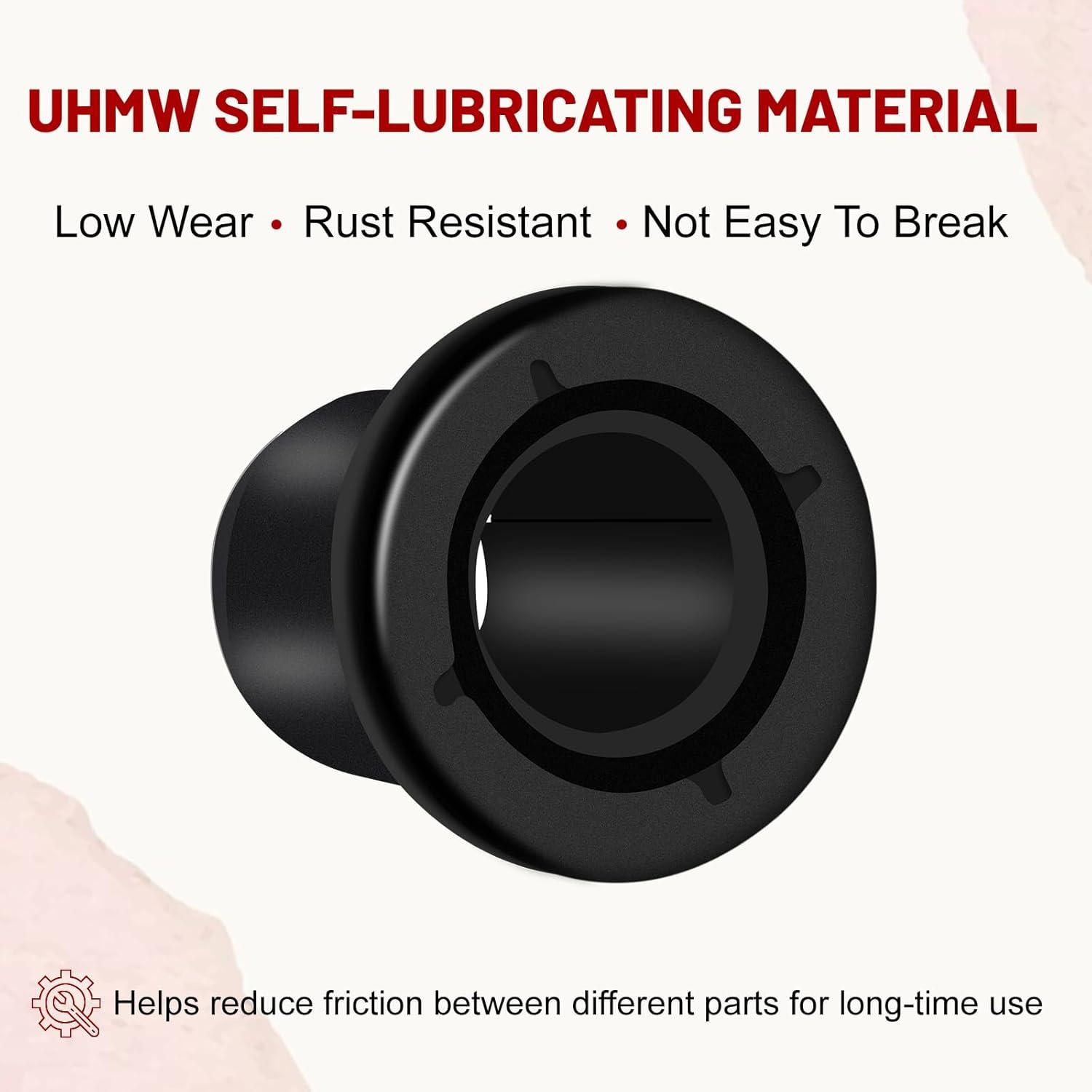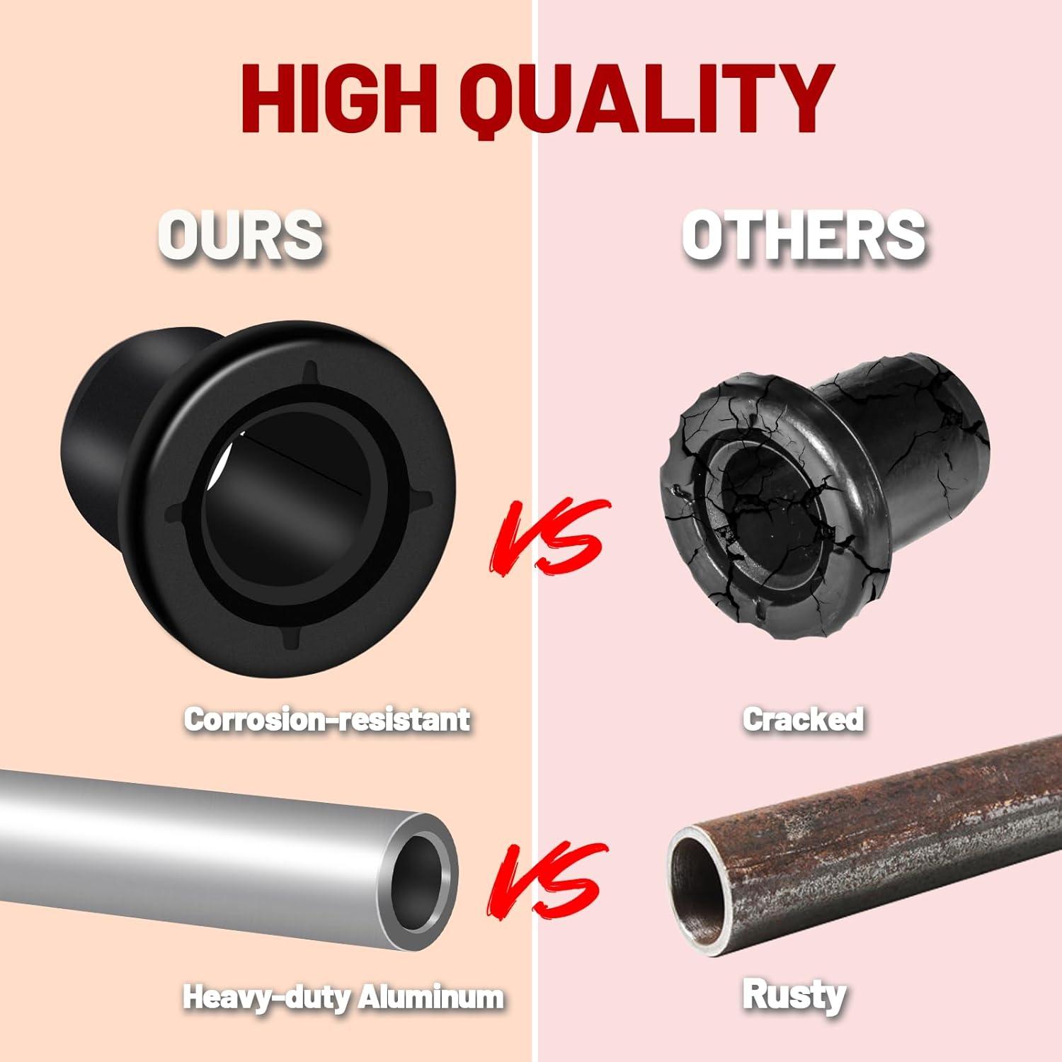 UHMW MATERIAL: The ranger control arm bushing kit made of UHMW low wear self-lubricating material, which helps reduce friction between different parts for long-time use. And the control arm sleeves are made of heavy-duty aluminum and will not get rusty and broken easily
