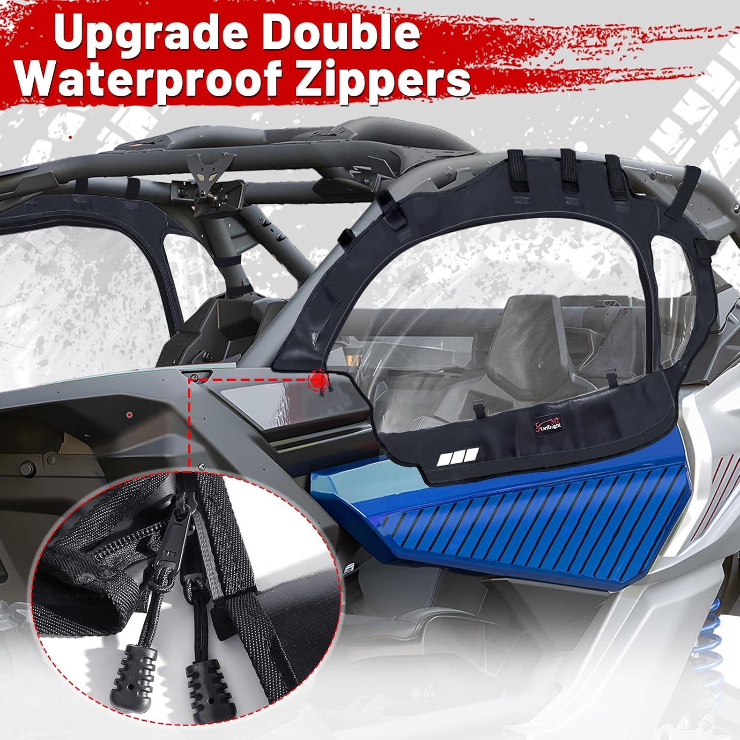 【Double Zippers Design】The zippers of maverick X3 soft window is covered with a layer of waterproof PVC on the outside. Cloth-covered zipper design has more defense to mud,dirt and rain, it can be smoothly pulled up when the zipper is splashed by rain and mud, instead of being ripped apart by us