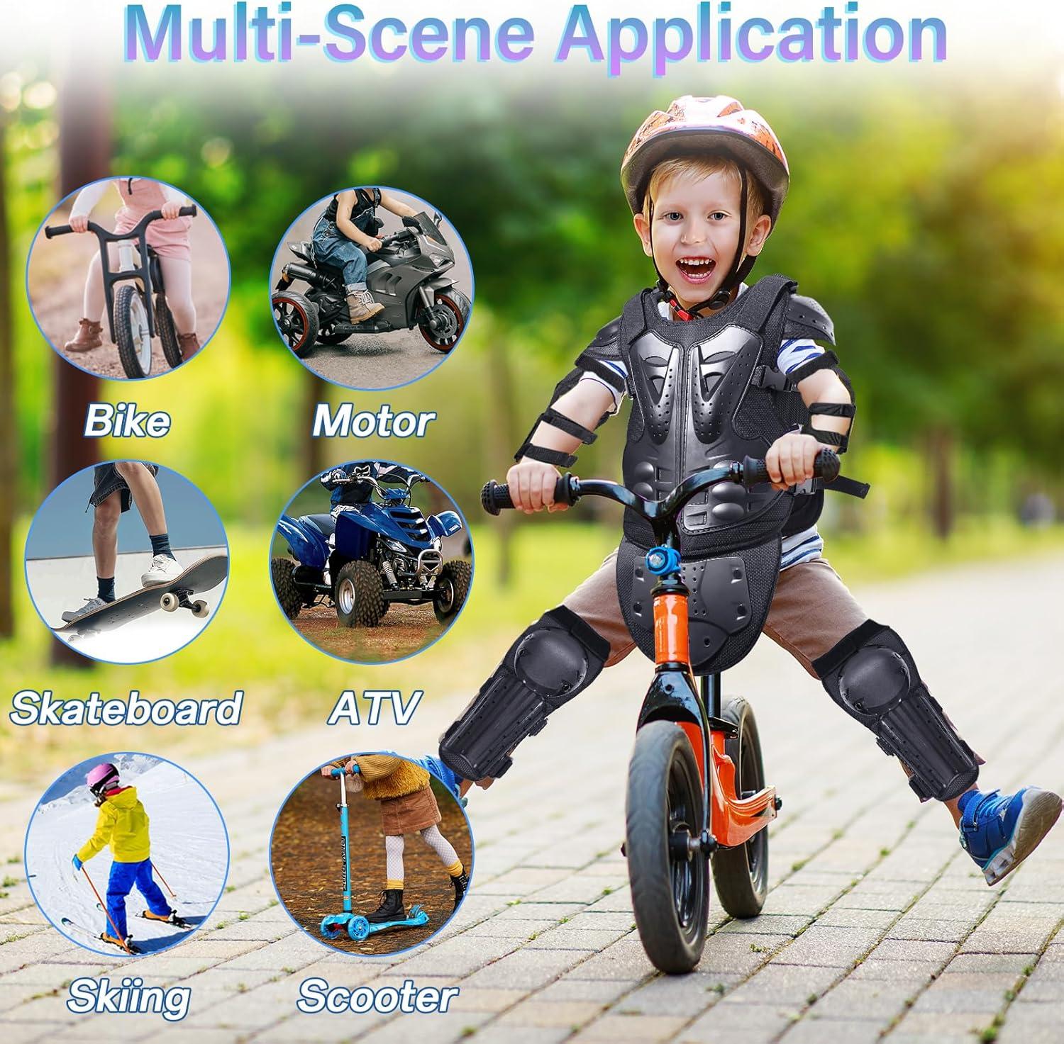 Upgraded Material: This kids dirt bike gear was designed with elastic band, key protection parts are made of PE toughness shell, high elastic foam and velvet. It is great breathable and has excellent impact and abrasion resistance to keep children safe