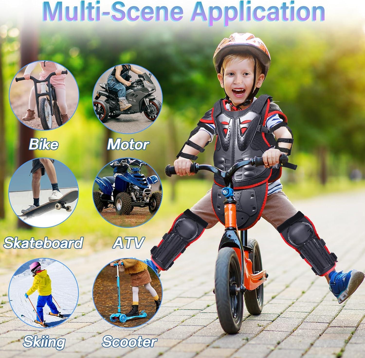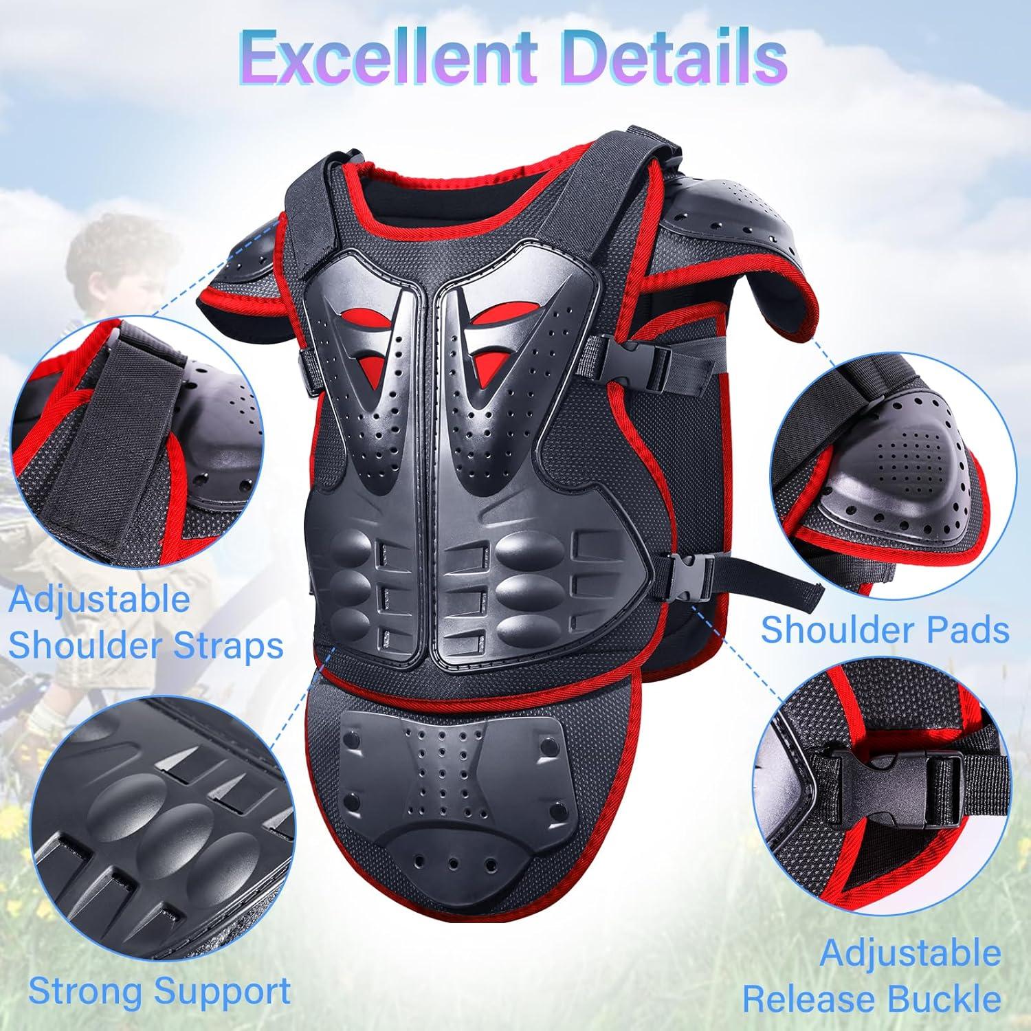 StarknightMT Upgraded Kids Motorcycle Armor Suit Teen Dirt Bike Gear Riding Protective Set for Cycling, Skateboarding, Skiing, Skating, Off-Road (Red)(Red)