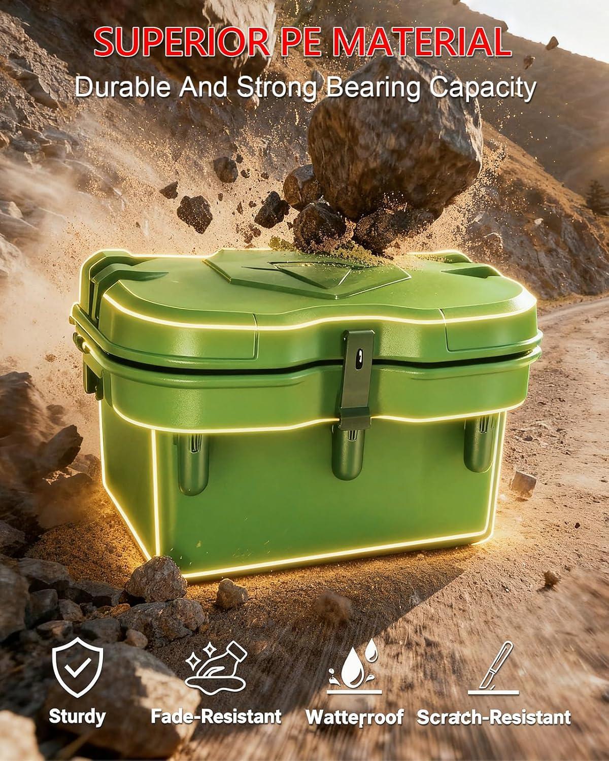 Premium Material: Molded from thickened polyethylene with UV stabilizers, the bed box effectively resists fading under UV exposure and withstands weight up to 110kg without deformation. A waterproof rubber gasket along the closure blocks rain, dust, and mud out