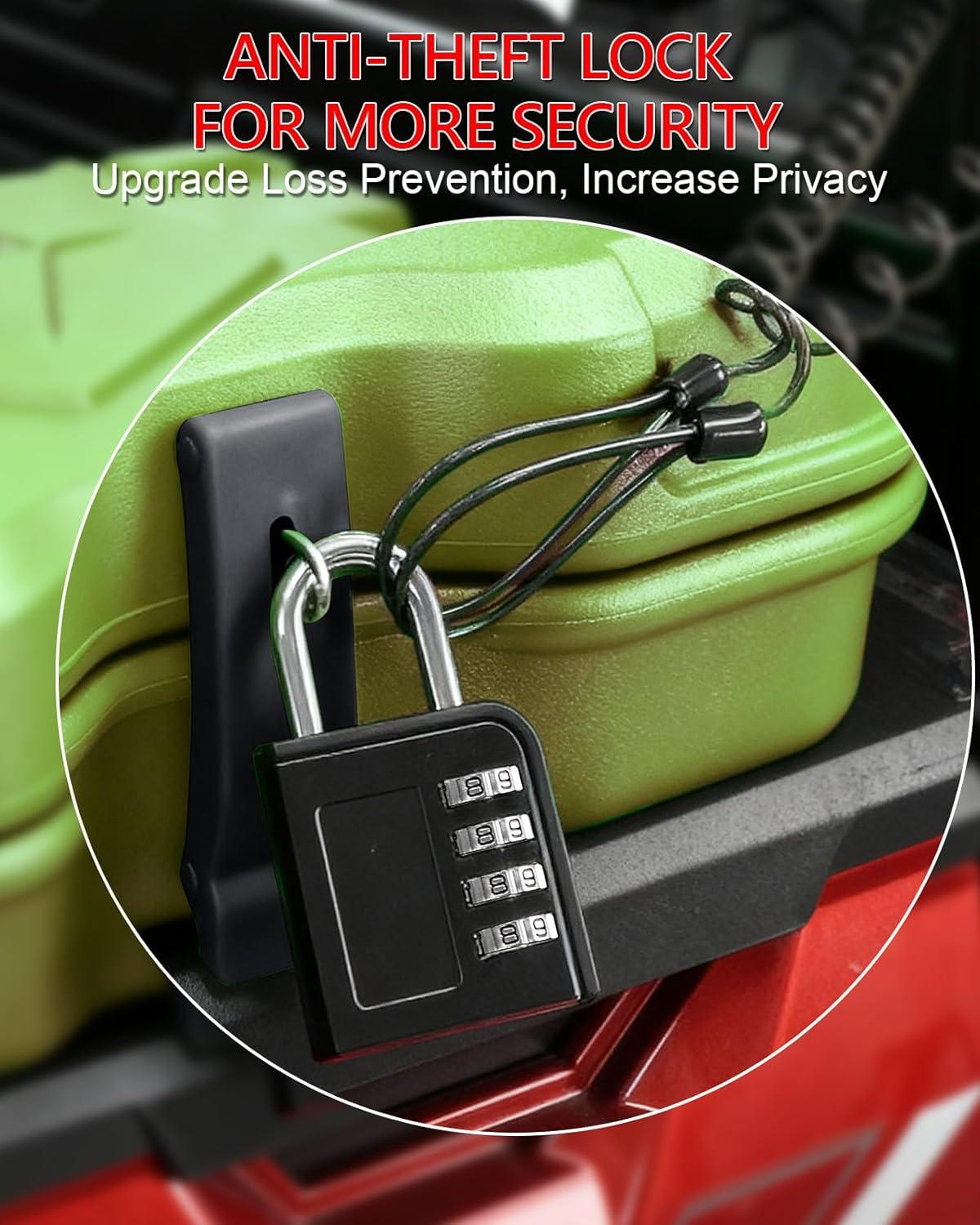 Anti-theft Combination Lock: The package comes with a 4-digit combination lock and a wire rope, You can set a custom combination and connect the box to the vehicle bar to safeguard your items