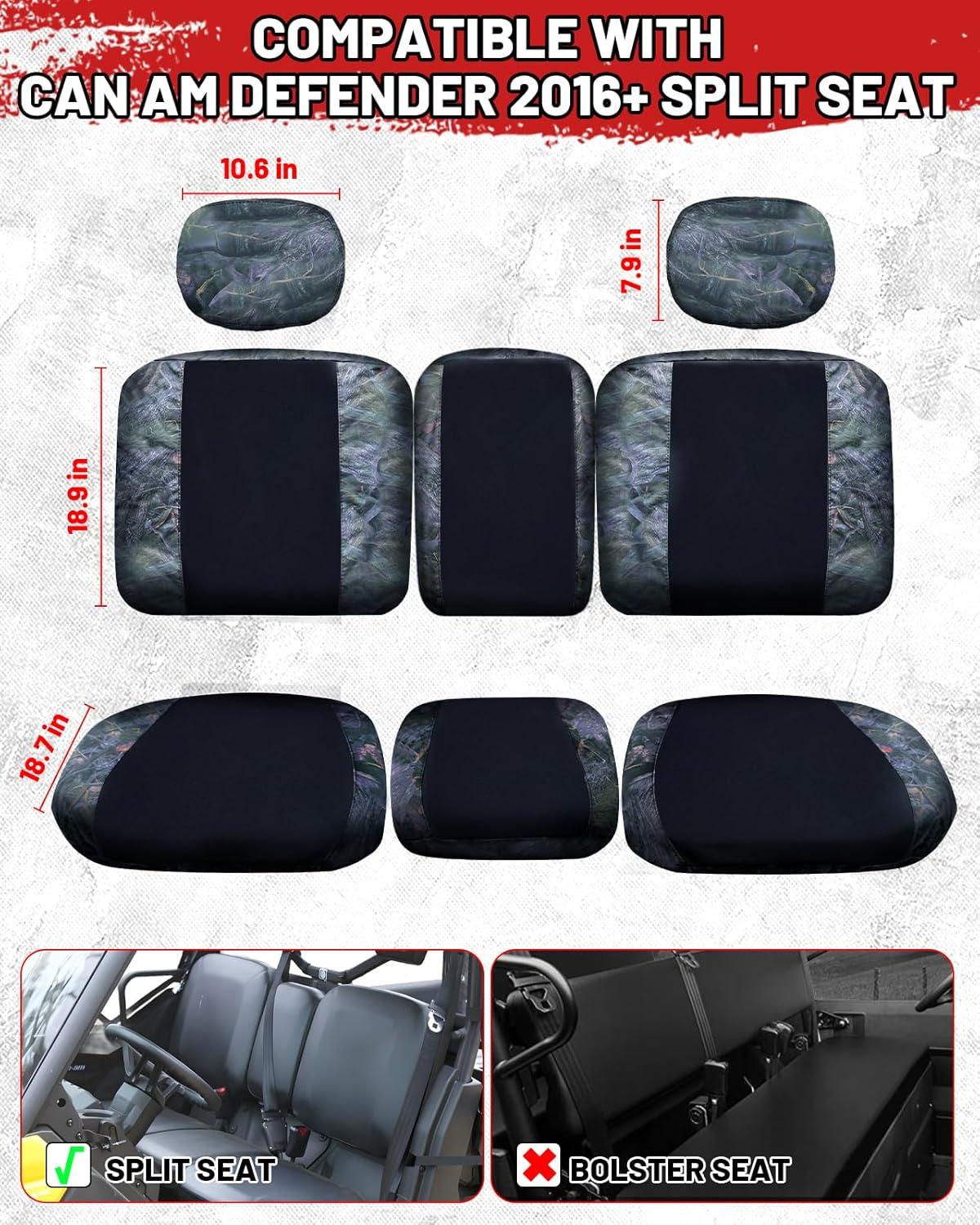 Designed For Defender: The UTV seat cover waterproof is compatible with Can Am Defender 2016-2025, Defender DPS 2016-2025, Defender DPS CAB 2021-2025, Defender MAX 2018-2025, Defender MAX DPS 2017-2025, Defender 6X6 DPS HD10 2020-2025, Defender PRO DPS HD10 2020-2025 split bench seat covers (Note: Do not fit defender bolster bench seats and only for the split seat)