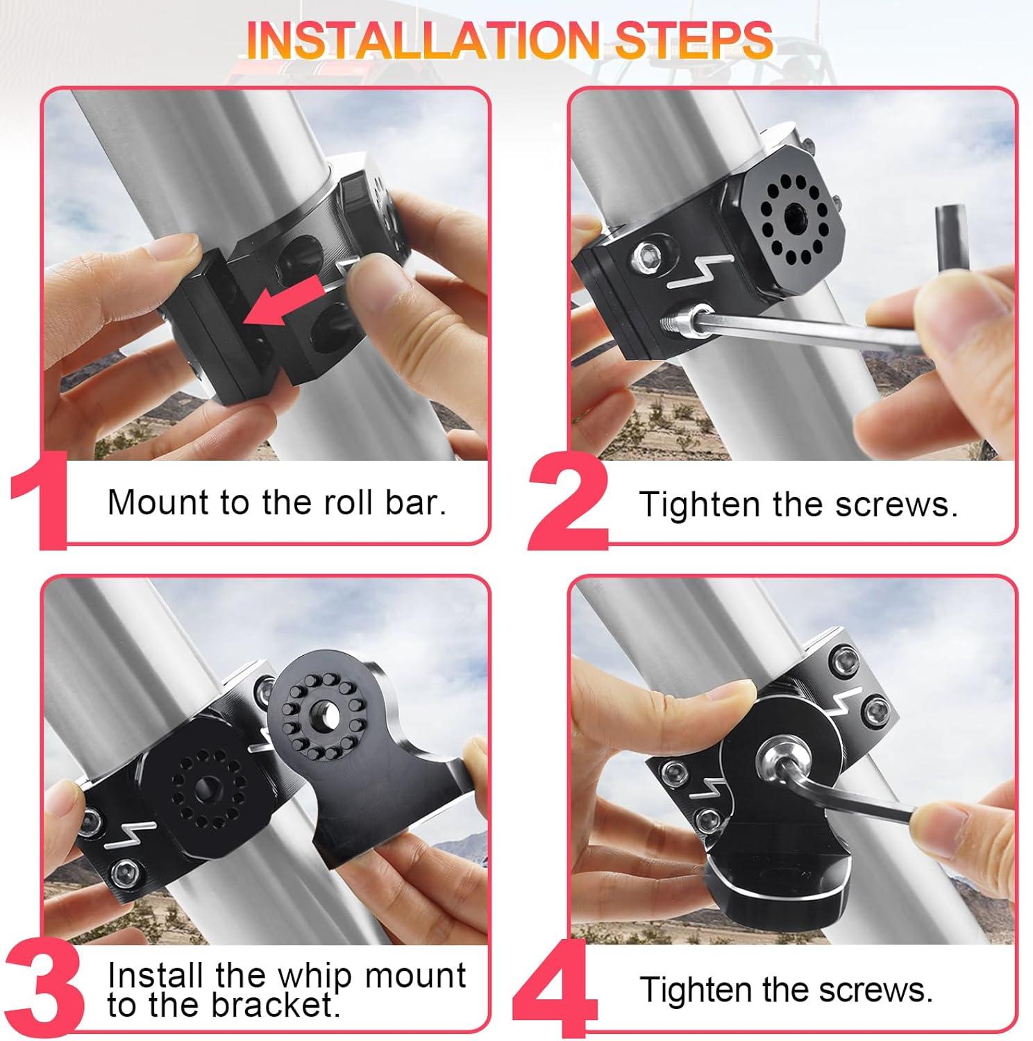 Thicken Heavy-Duty Whip Mount: The UTV whip mount is high-quality CNC aluminum made with a matte black finish look, and StarknightMT use a thickened L bracket to ensure no drop or bent for your whip light, all of these designs make sure this UTV whip mount is heavy-duty, rustproof, and can be applied on various terrains and all-weather