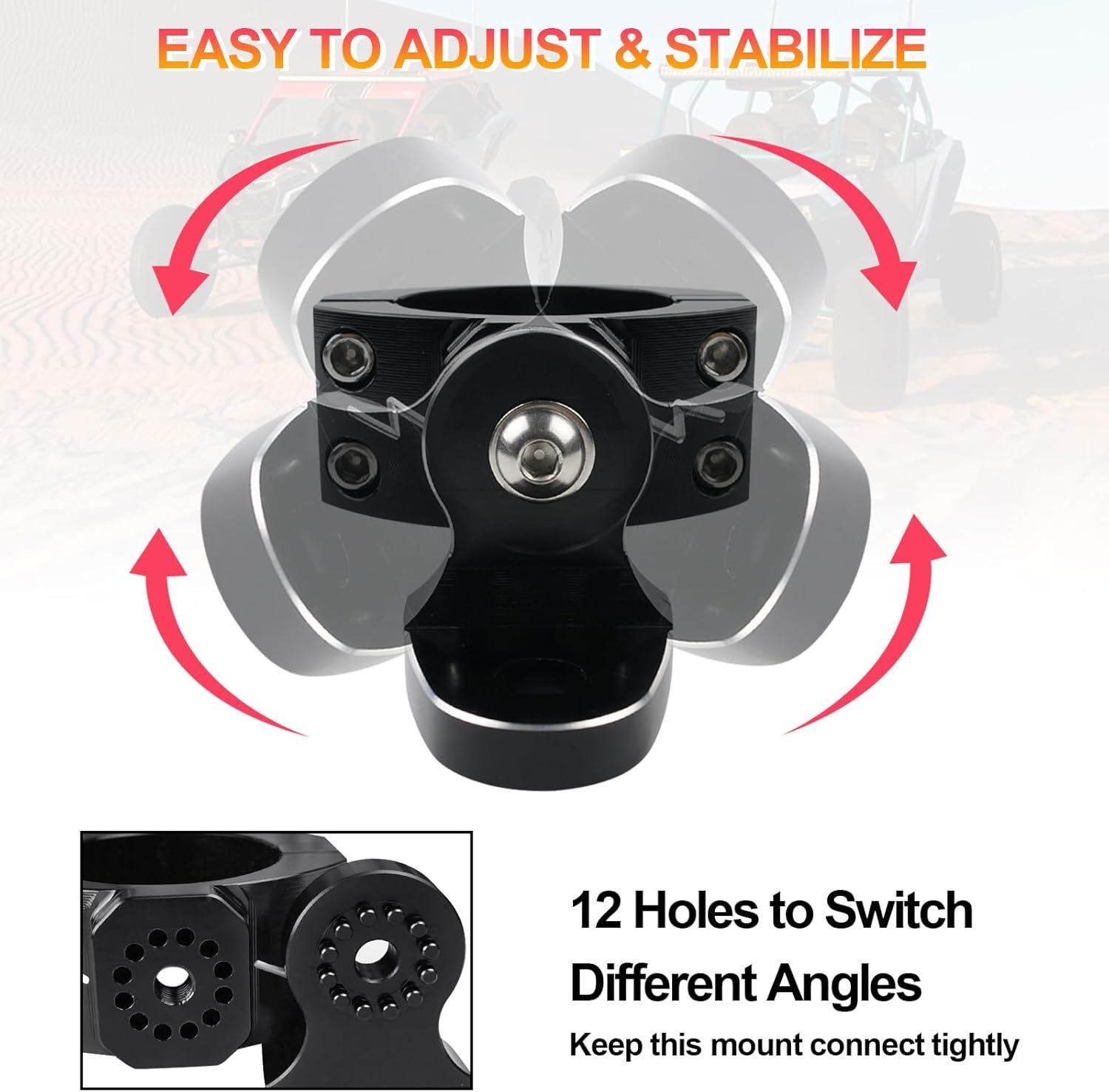 UTV Whip Light Flag Mount Widely Fits for 1.75″ to 2″ Round Roll Cages