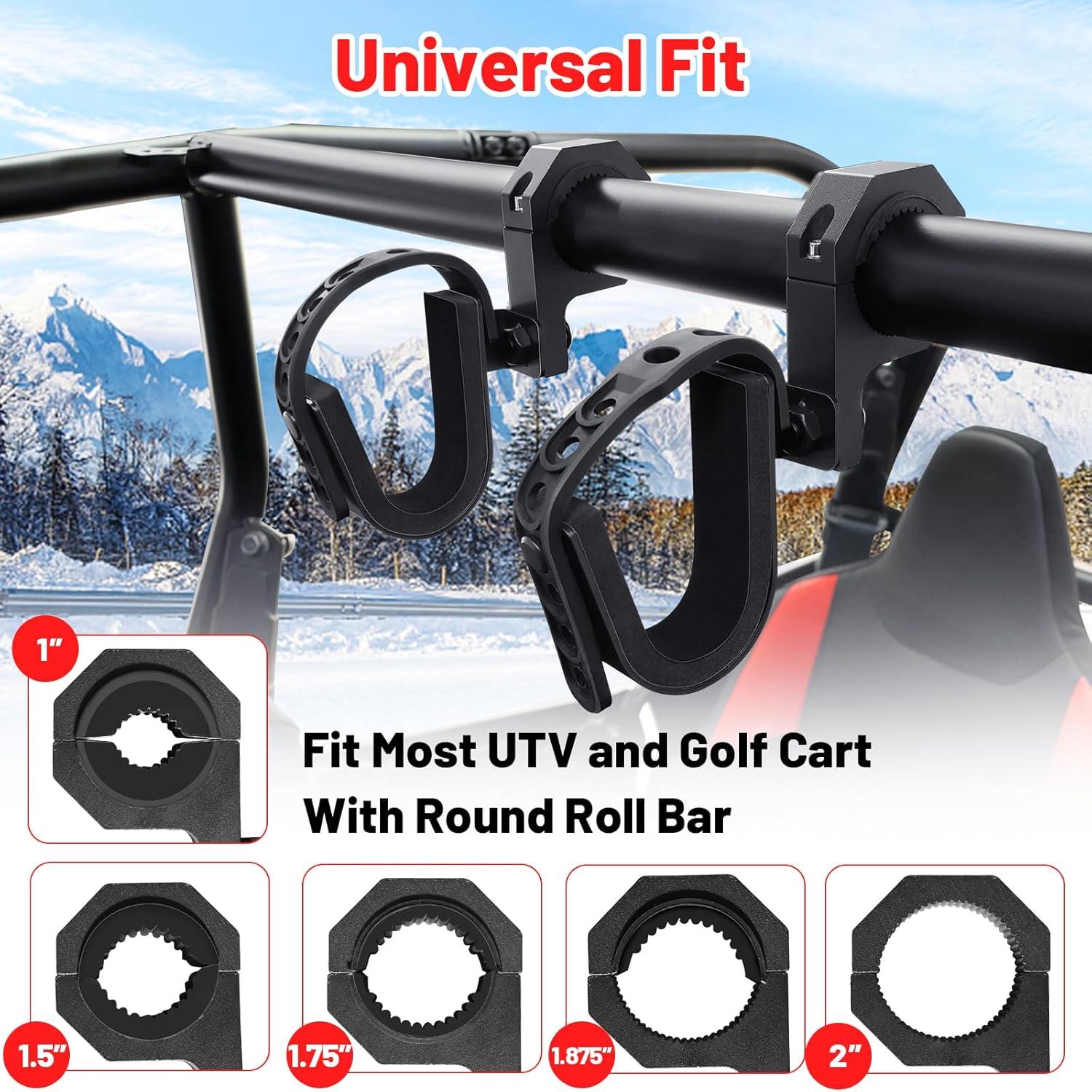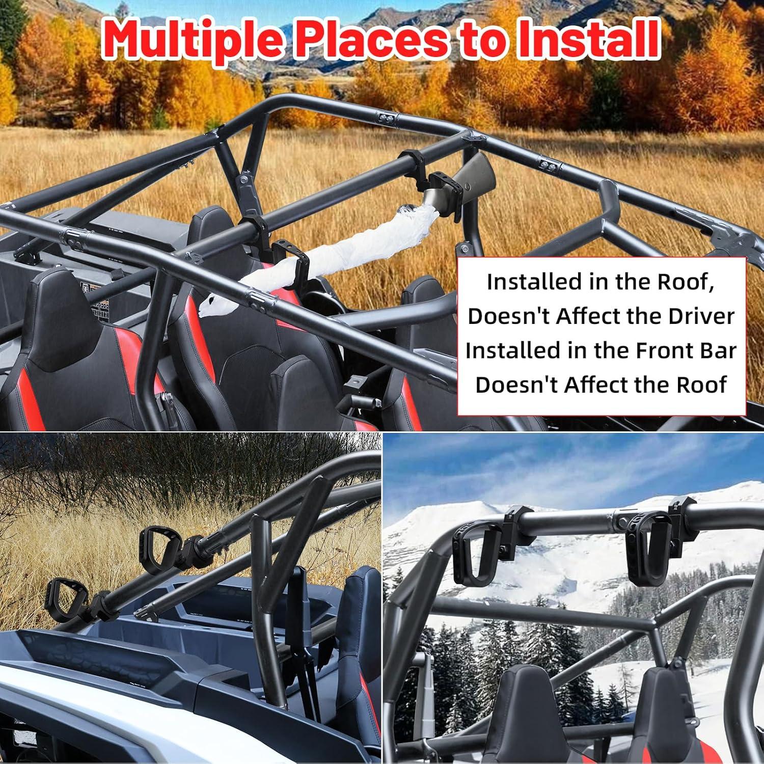 Sturdy Steel Gun Rack: The gun rack is made of high-strength alloy steel material, with great durability in any harsh weather, and with a widened and thickens strap, the gun mount stays more solid and durable, and will serve your UTV a long term