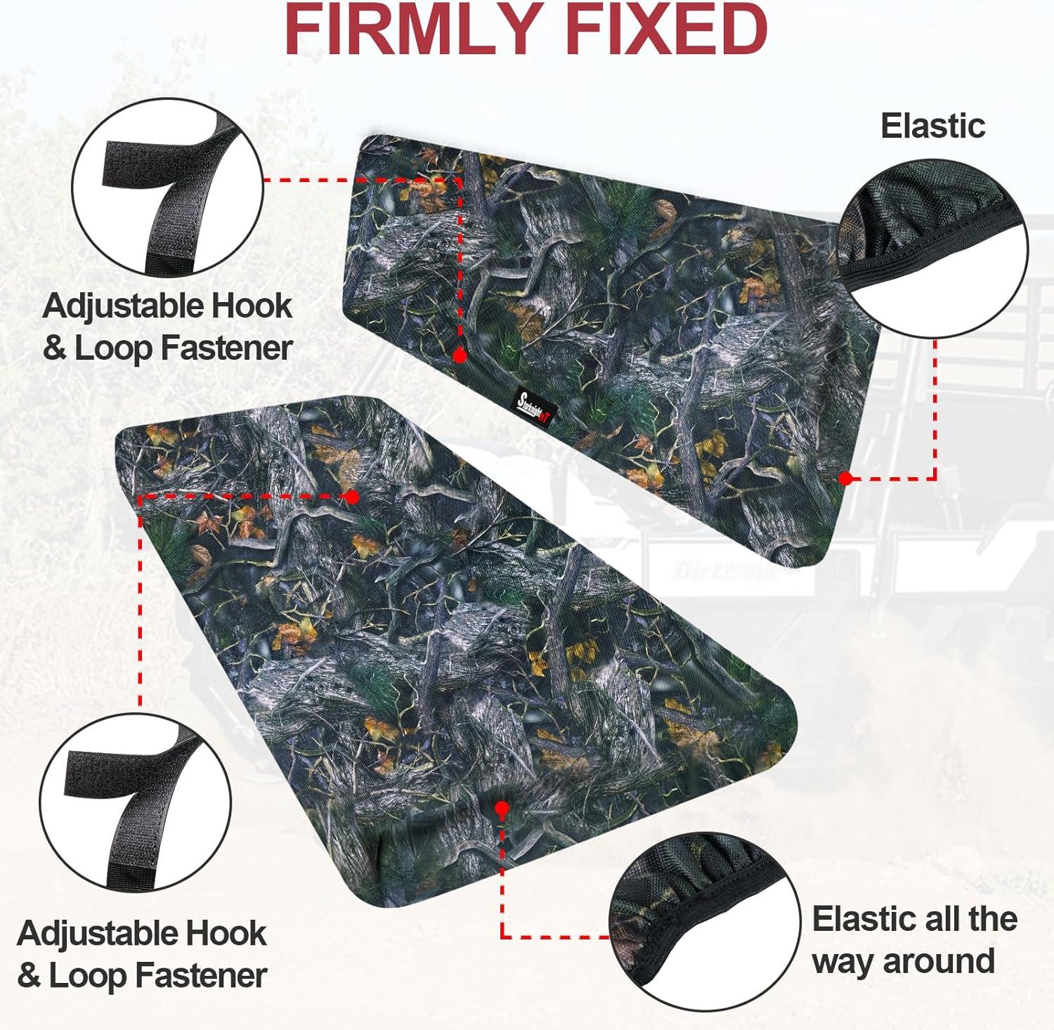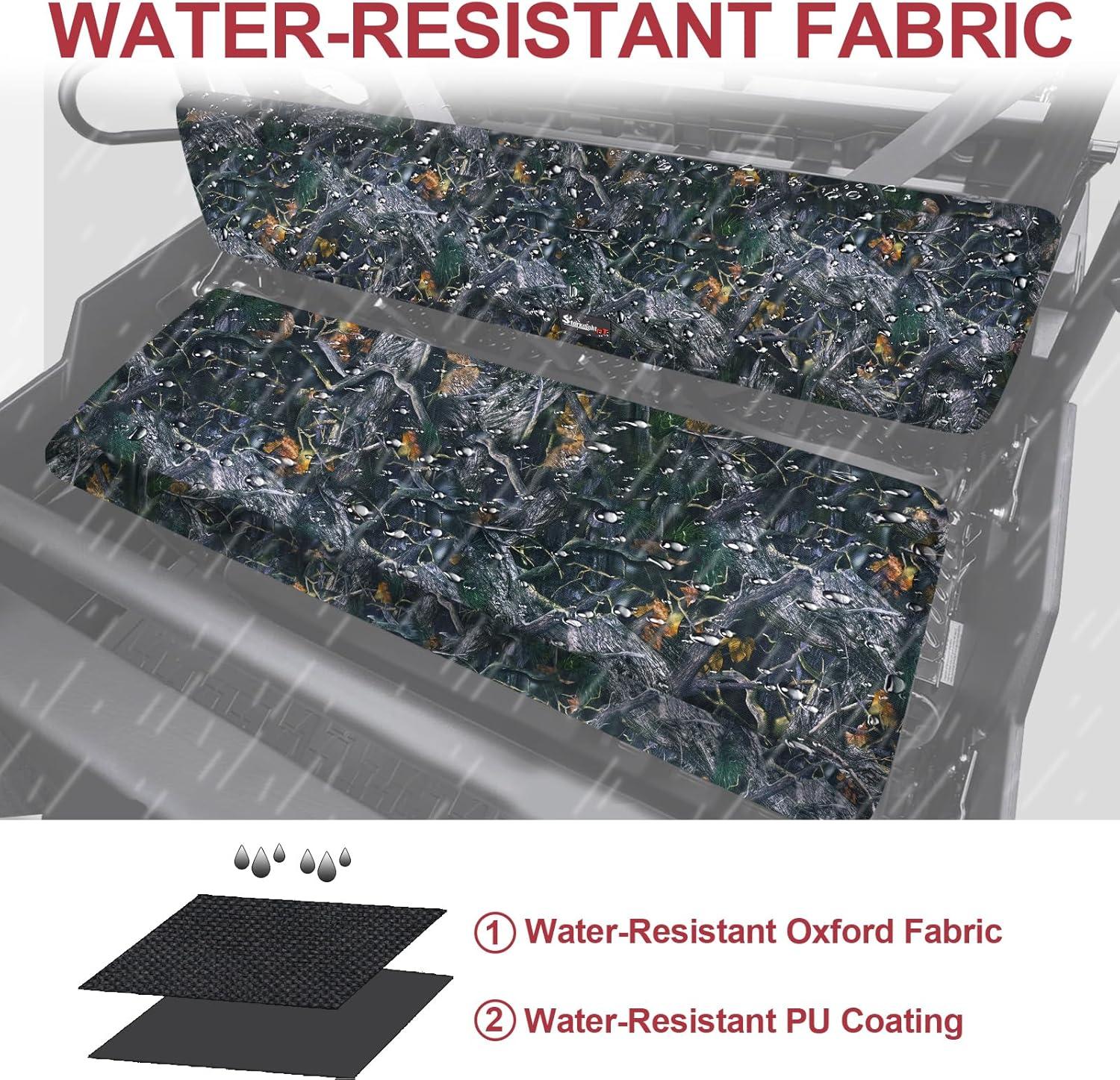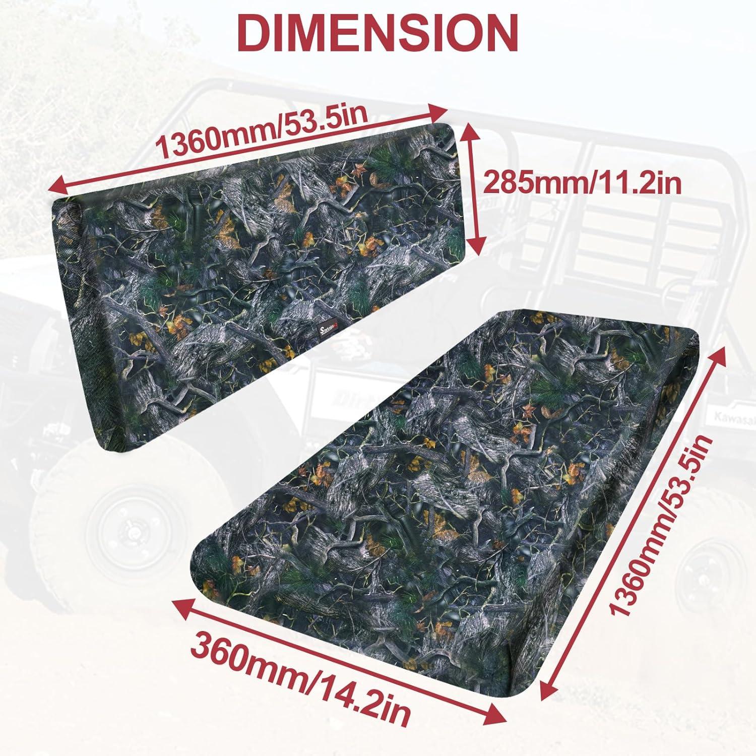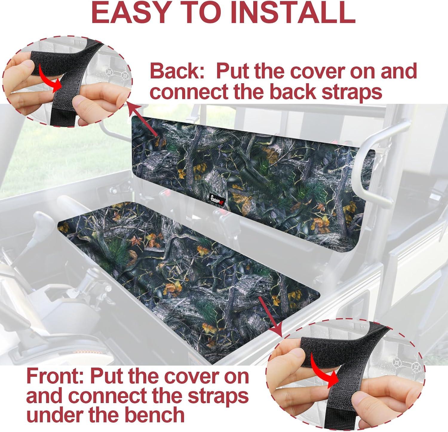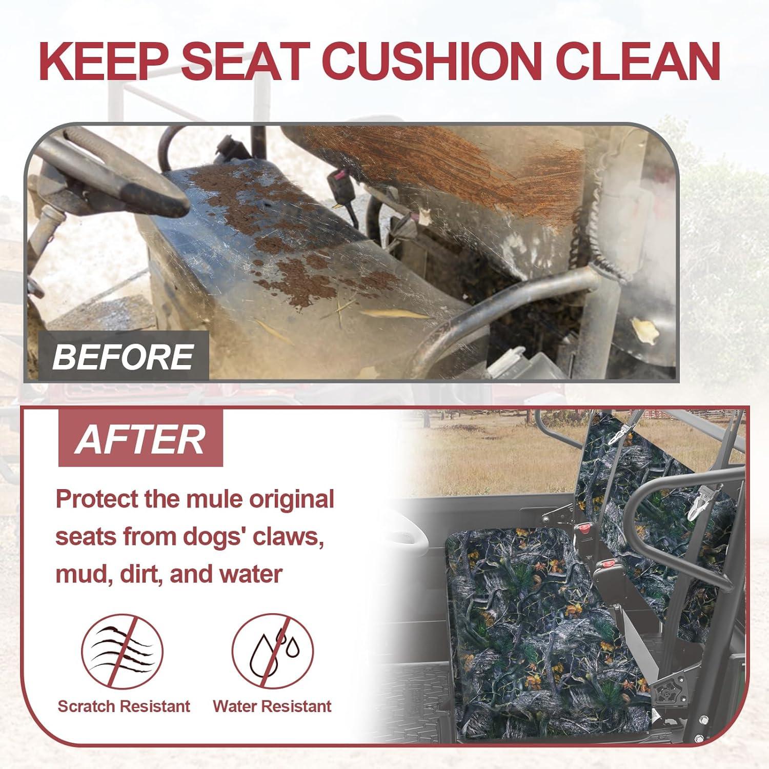 Adjustable Design: The mule pro fxt seat covers, features an elastic band along the cover’s edge, 2 sturdy sticky straps on bottom seat cover and 2 hook and loop fasteners on the back seat cover, providing a quick and custom-like fit, which will help the seat cover set match your UTV seat cushion firmly
