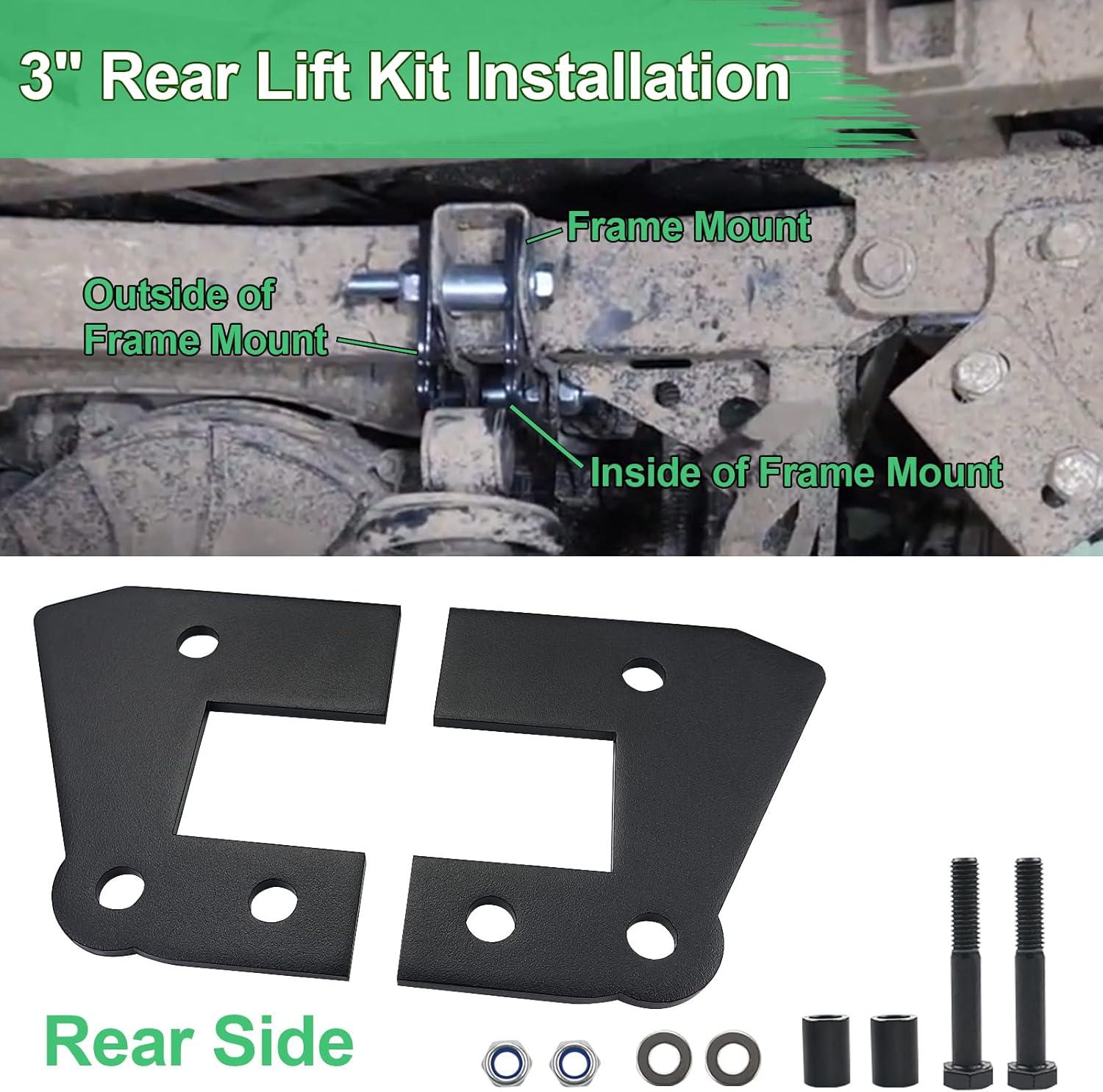 Aggressive Safe Upgrade: The lift kit provides 3″ extra front and rear clearance and proper suspension geometry, assisting you to ride through tough terrains and harsh weathers situation, making it easier to ride through high snow, and deep mud
