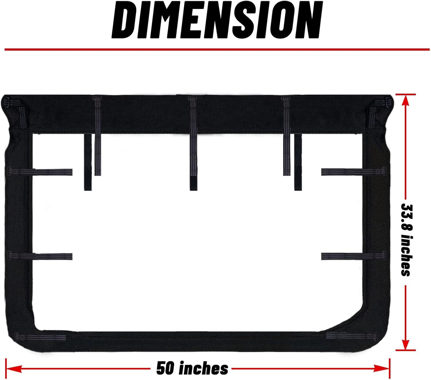 EASY INSTALLATION: Just need fix the rear window hook and loop fasteners to your vhicle roll cages,only take few minutes to install; The topside three straps will help stretch the windshiled, do not sag like other soft rear window