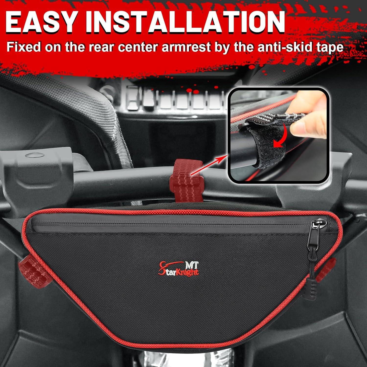 COMPACT SIZE: Starknightmt side by side rear center armrest bag will keep your belongings organized without taking up valuable space.RZR center seat storage bag is perfect for you to store essentials when space is limited
