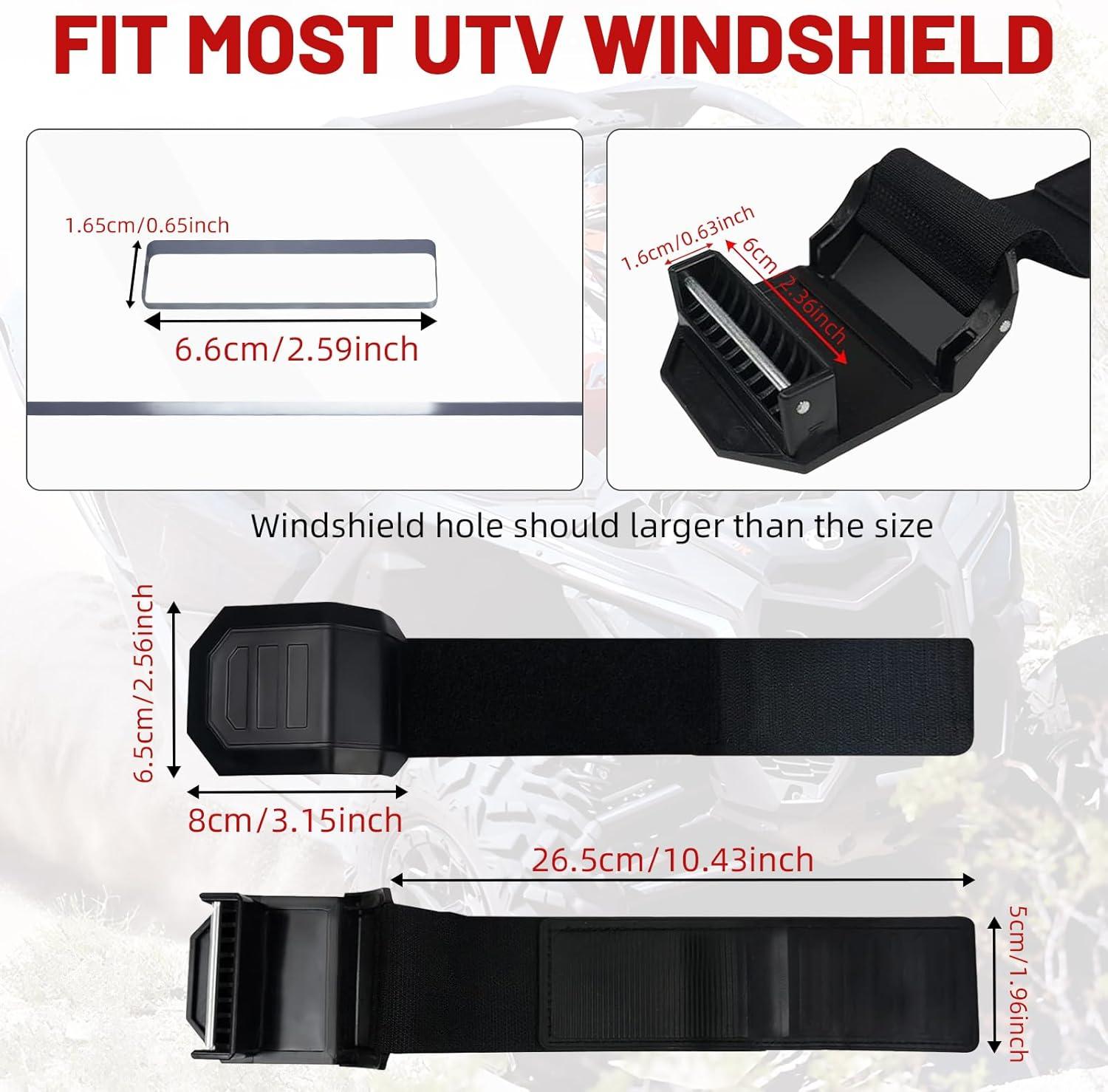 Longer Length: There are two clamps in the package, the length of the straps is 10.4in, longer to fit more UTV roll bars. Don't worry UTV windshield mounting clamps is too short to not fit well