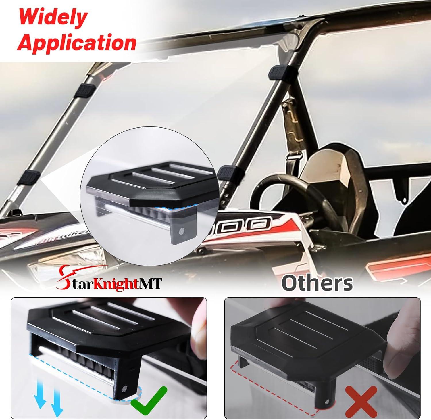 Stable and Anti-Vibration Clamps: Unique design of UTV windshield clamps for better stability and fitted to your windshield, not vibrate and be noisy when across rocky terrain