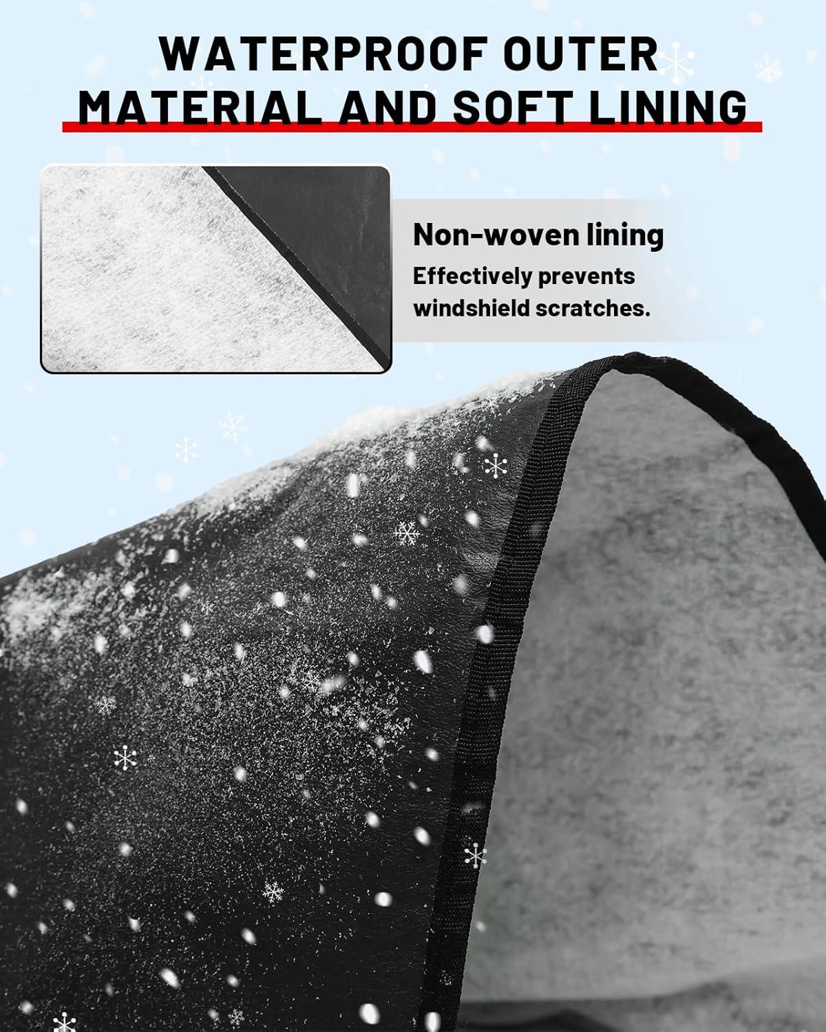 Waterproof and Durable Material: Made of 800D oxford fabric with a PU leather coating, this windshield cover is both waterproof and scratch-resistant. It effectively blocks frost, ice, and snow, ensuring reliable protection in harsh weather