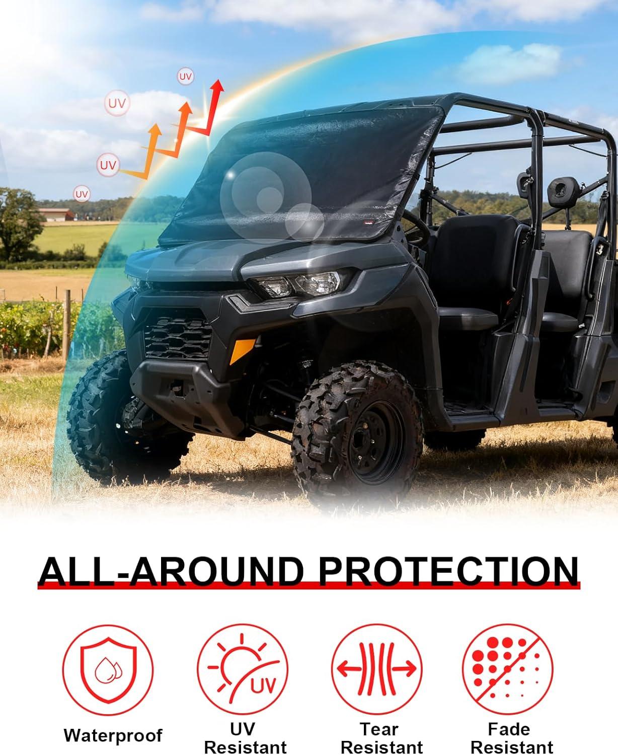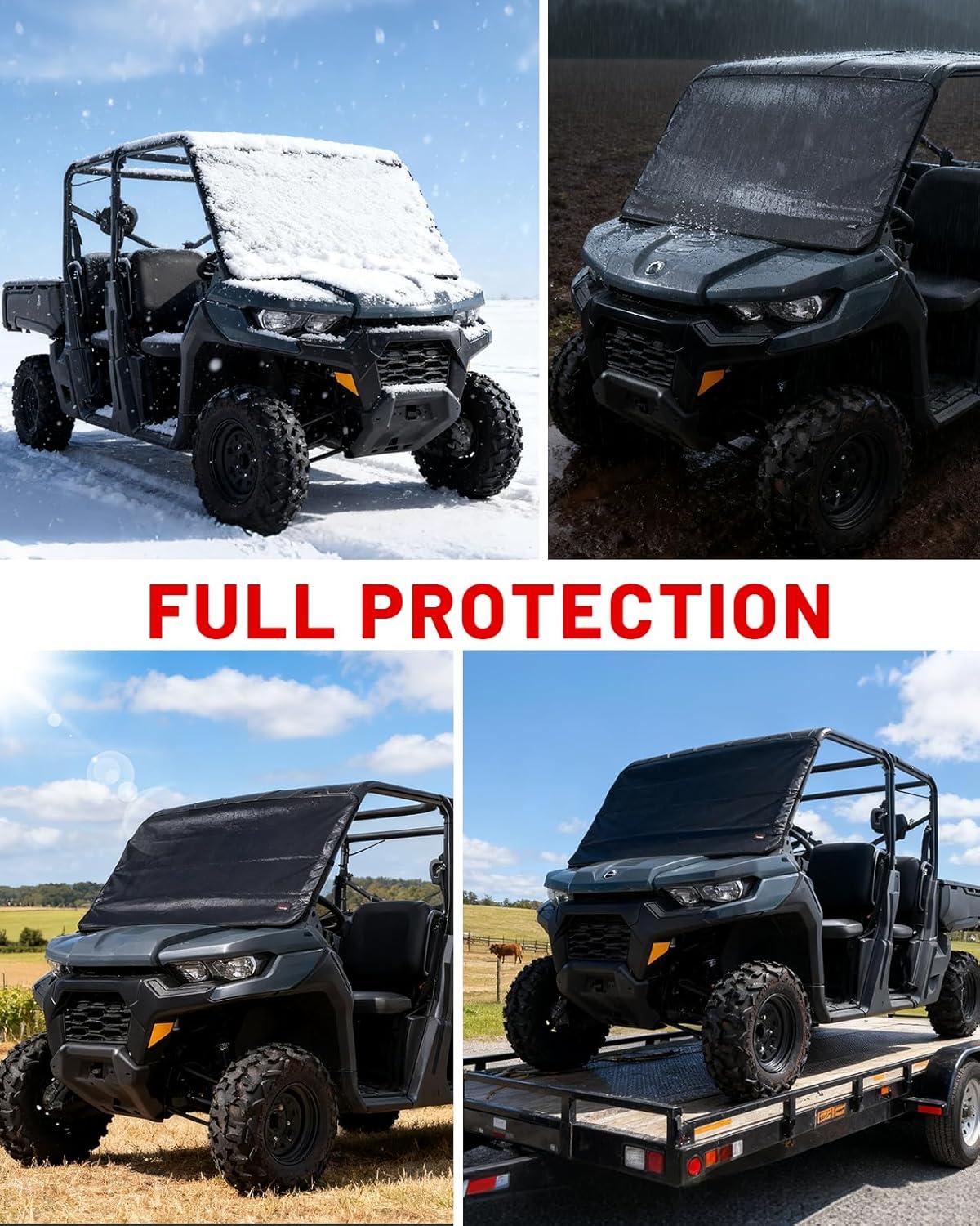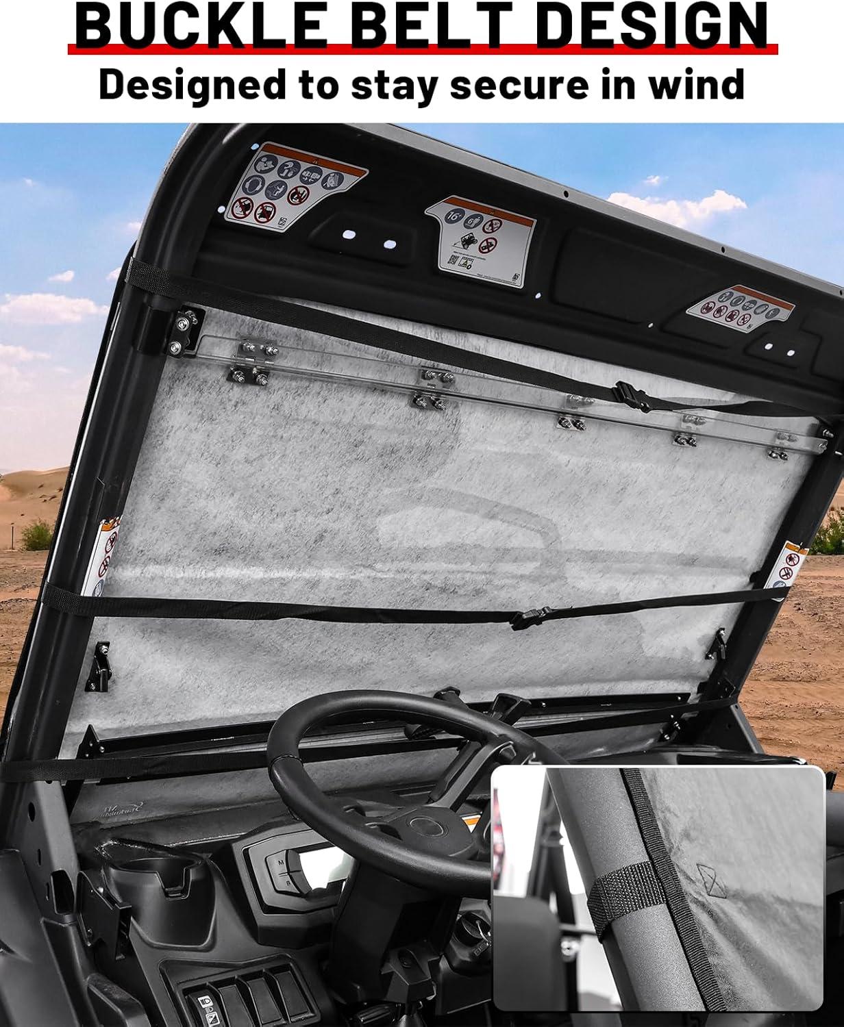 Fitment: The windshield ice cover is compatible with Defender HD5 HD8 HD10 MAX 2016-2025 andPolaris Ranger XP 1000 / Crew XP 1000 2017-2025. NOTE: It does NOT compatible with RZR, ATVs, bikes, or other larger UTVs