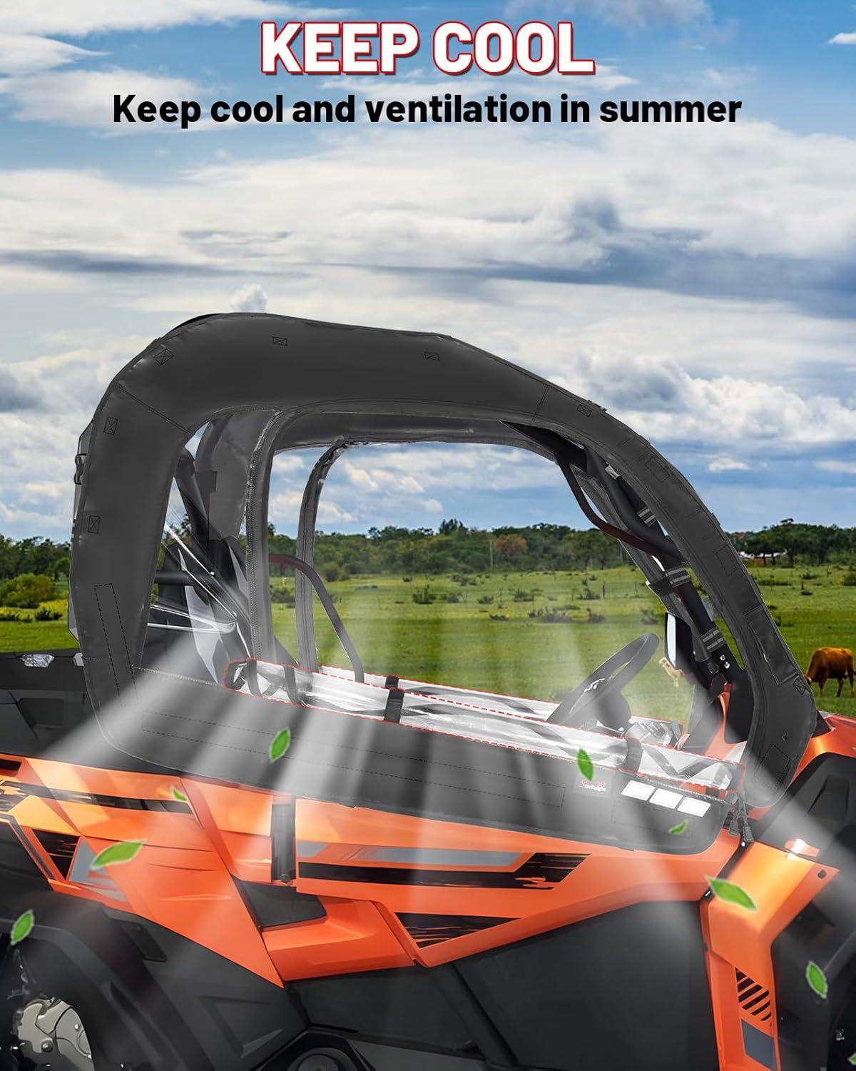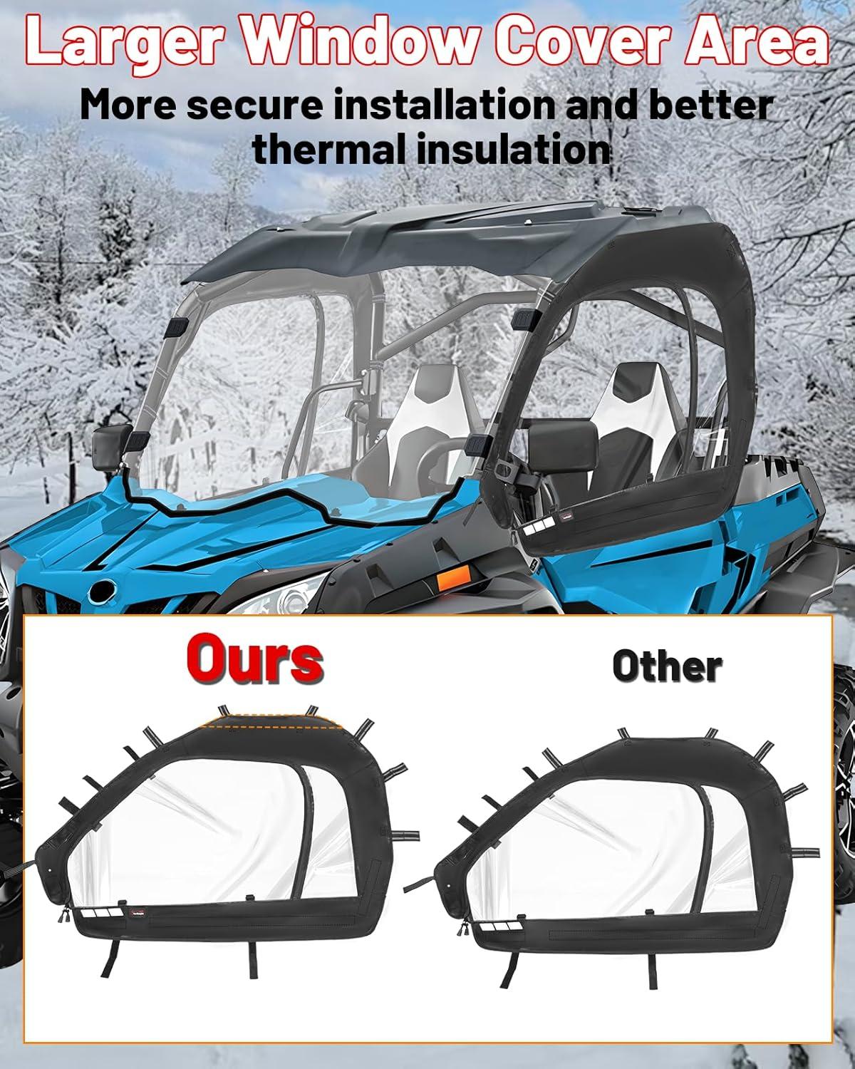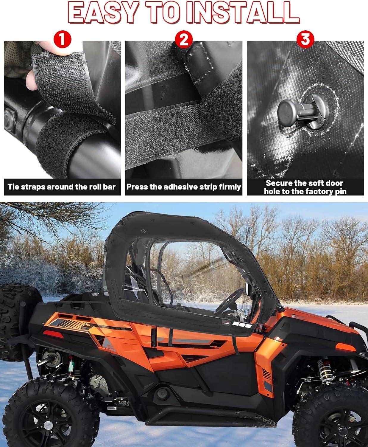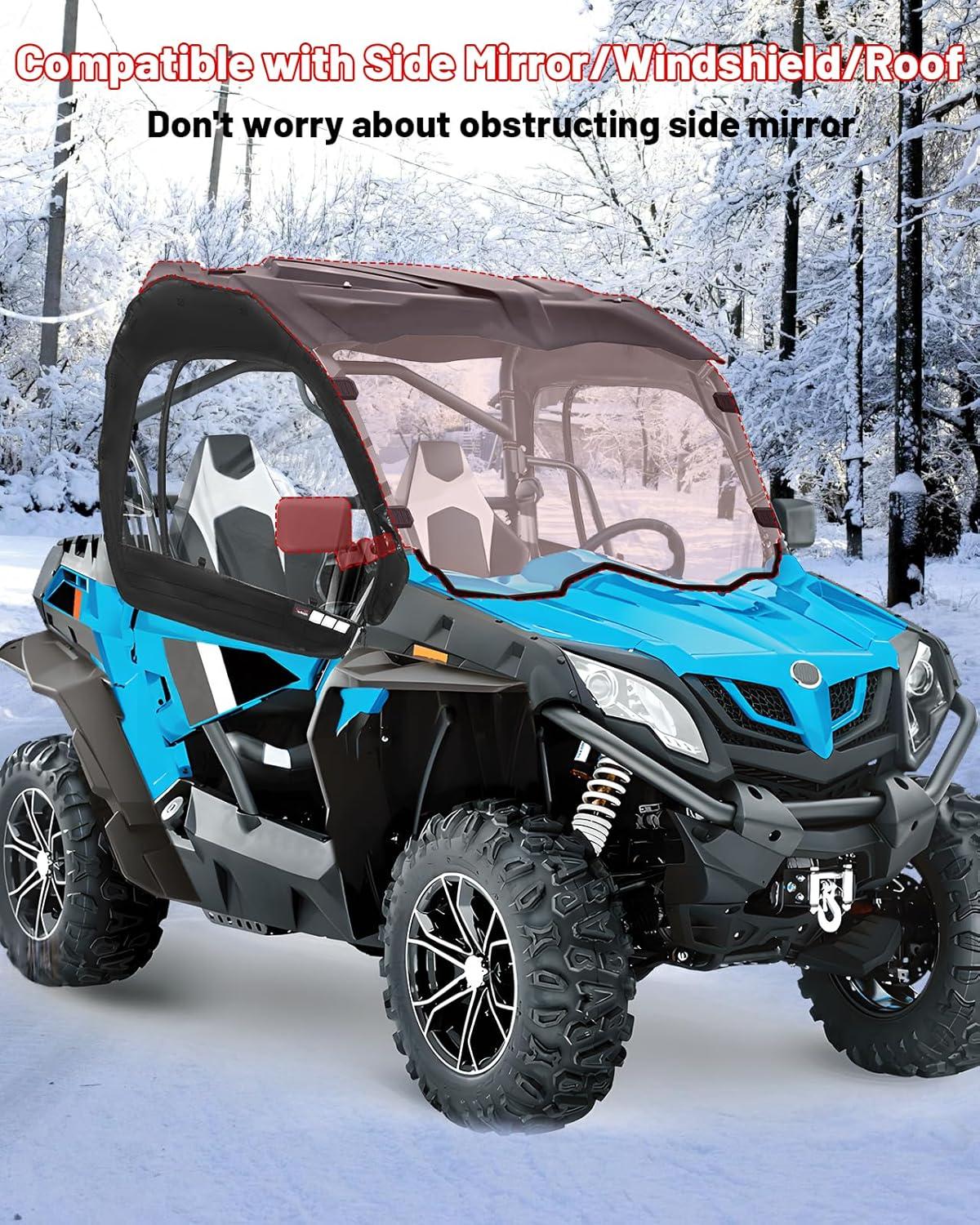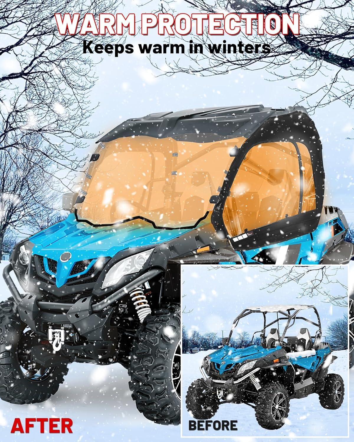 Warm Protection: Zforce 800 upper doors with extra-wide fabric at the top of it, making its installation stable and providing better warm protection. Prevent rain, snow, mud, sand, dust, leaves, and other flying debris from entering the cab to keep the interior clean and tidy